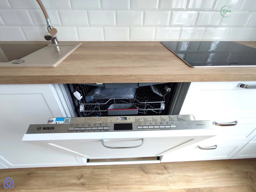 Widna kuchnia z jadalnią - 11,73 m2, (lodówka, zmywarka, piekarnik, płyta, stół z 4 krzesłami),