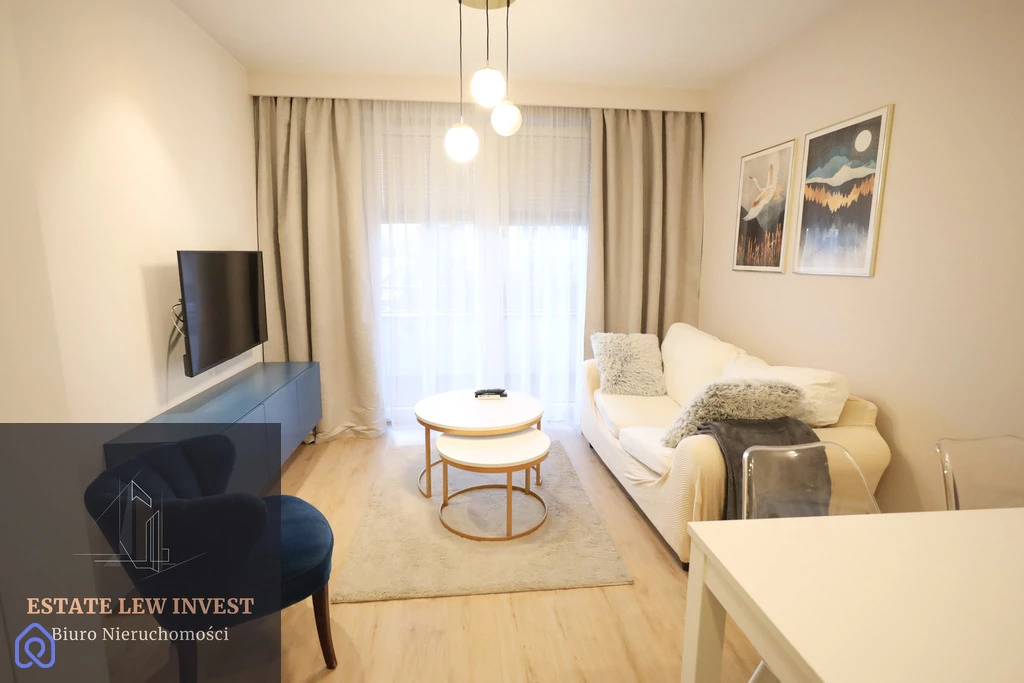 Estate Lew Invest presents a unique offer of renting a comfortable apartment with an area of 47 m², located on the first floor of a modern building. The interior, stylishly arranged by designers, combines functionality with elegance, creating an ideal space for living.