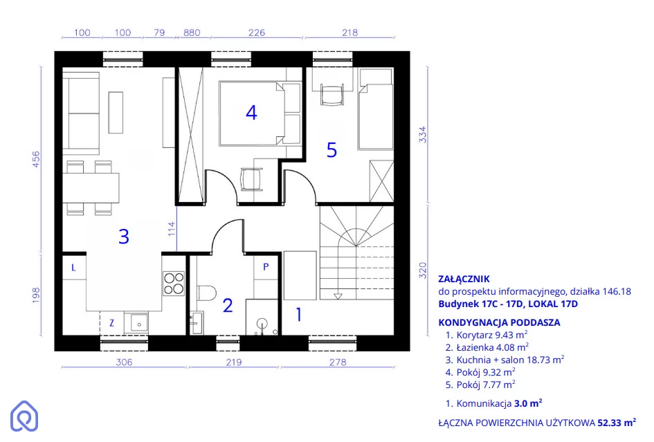 Powierzchnia: 52.33 m2