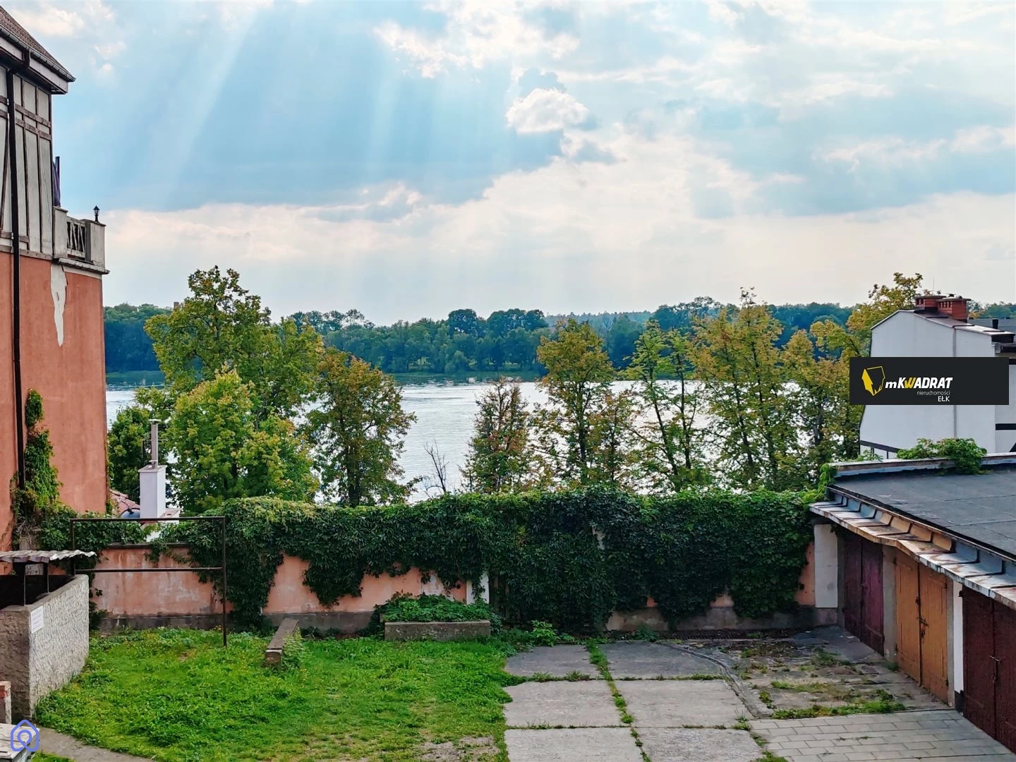 Hol prowadzi do mniejszego pokoju, który łączy się z dużym salonem z balkonem. Z holu mamy również dostęp do dużej, jasnej kuchni z drugim balkonem, z którego roztacza się widok na jezioro. Osobne wejście z korytarza prowadzi do łazienki z WC oraz do dużego salonu, który można podzielić na dwa pokoje.Stan techniczny: Mieszkanie wymaga generalnego remontu. Okna zostały wymienione na PCV około 7 lat temu, a drzwi wejściowe około 5 lat temu. Podłogi w dwóch pokojach oraz holu wyłożone są panelami, natomiast w pozostałych dwóch pokojach zachowane są oryginalne deski. Kuchnia przeszła remont 4-5 lat temu, a łazienka z WC wymaga gruntownej modernizacji. Ogrzewanie obecnie realizowane jest za pomocą pieców kaflowych, jednak istnieje możliwość instalacji centralnego ogrzewania gazowego.Dodatkowe atuty: Do mieszkania przynależą dwie piwnice oraz pomieszczenie gospodarcze na parterze kamienicy. Kamienica, zbudowana w 1925 roku, przeszła termomodernizację około 4 lata temu.