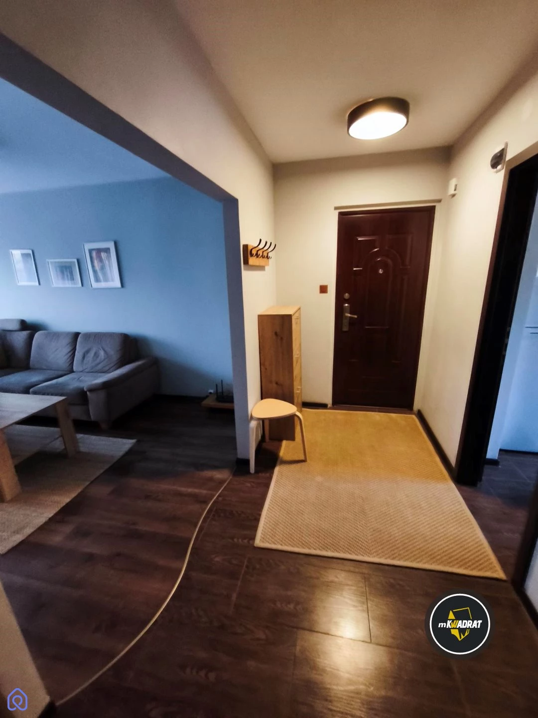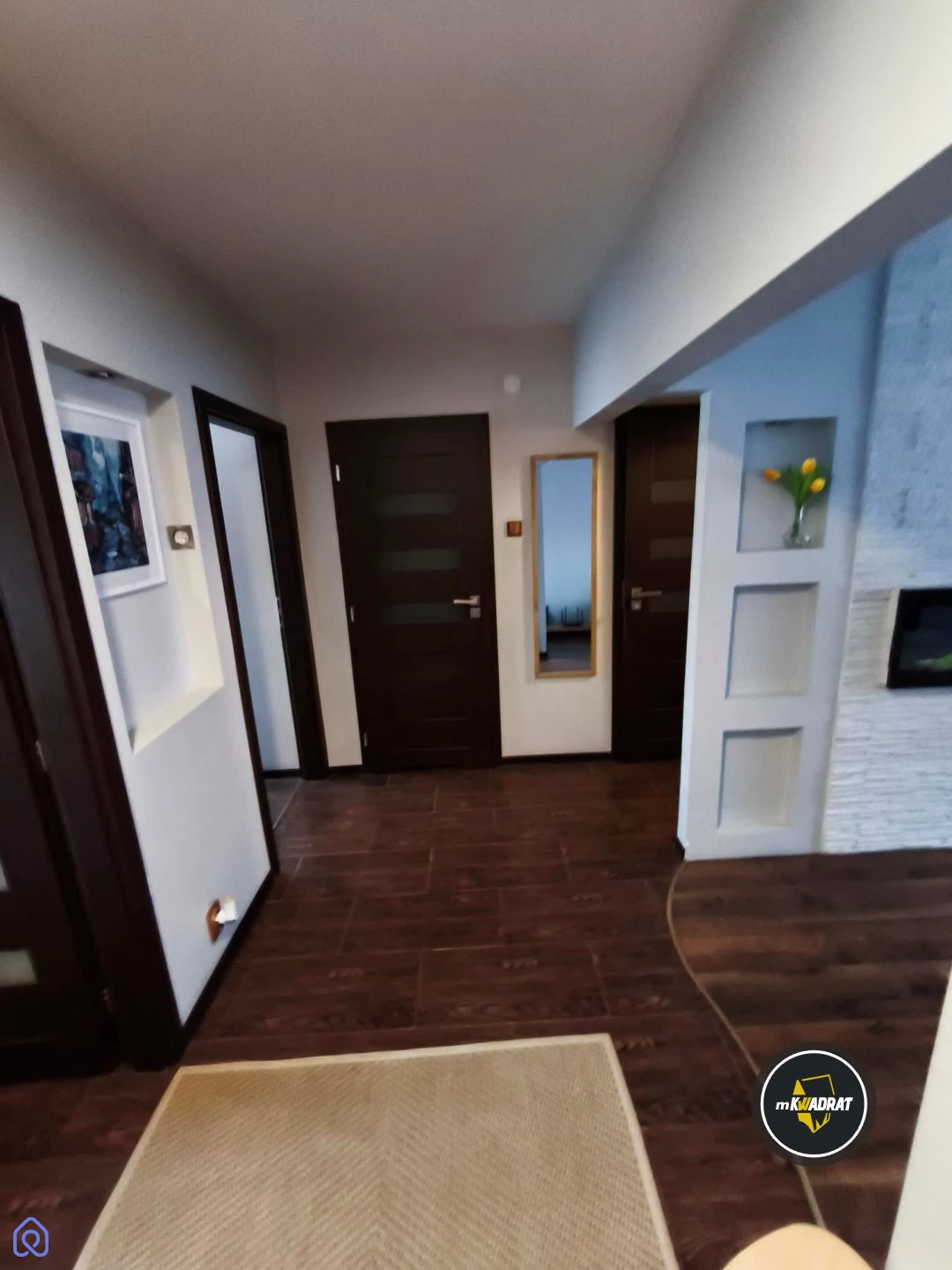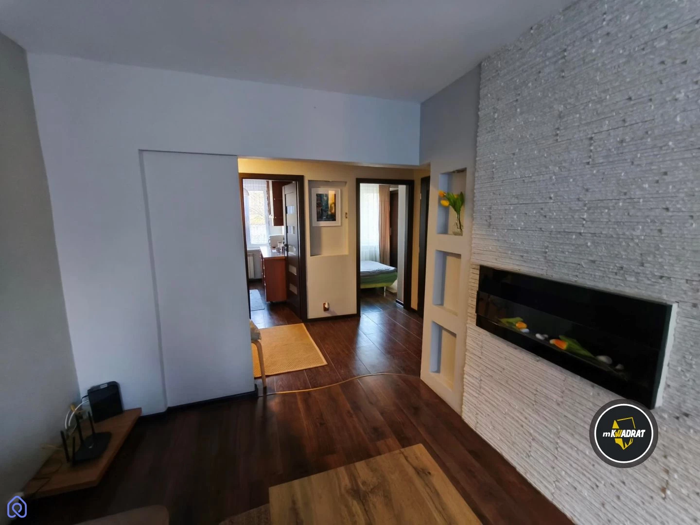 Pierwsze piętro, salon z widokiem na szkołę policealną, oddzielna i wyposażona kuchnia , sypialnia z dużym łóżkiem i szafą na całą szerokość ściany, łazienka z prysznicem i pralką, niewielkie wc, składzik. Do mieszkania przynależy spora piwnica o powierzchni 5,03m2.