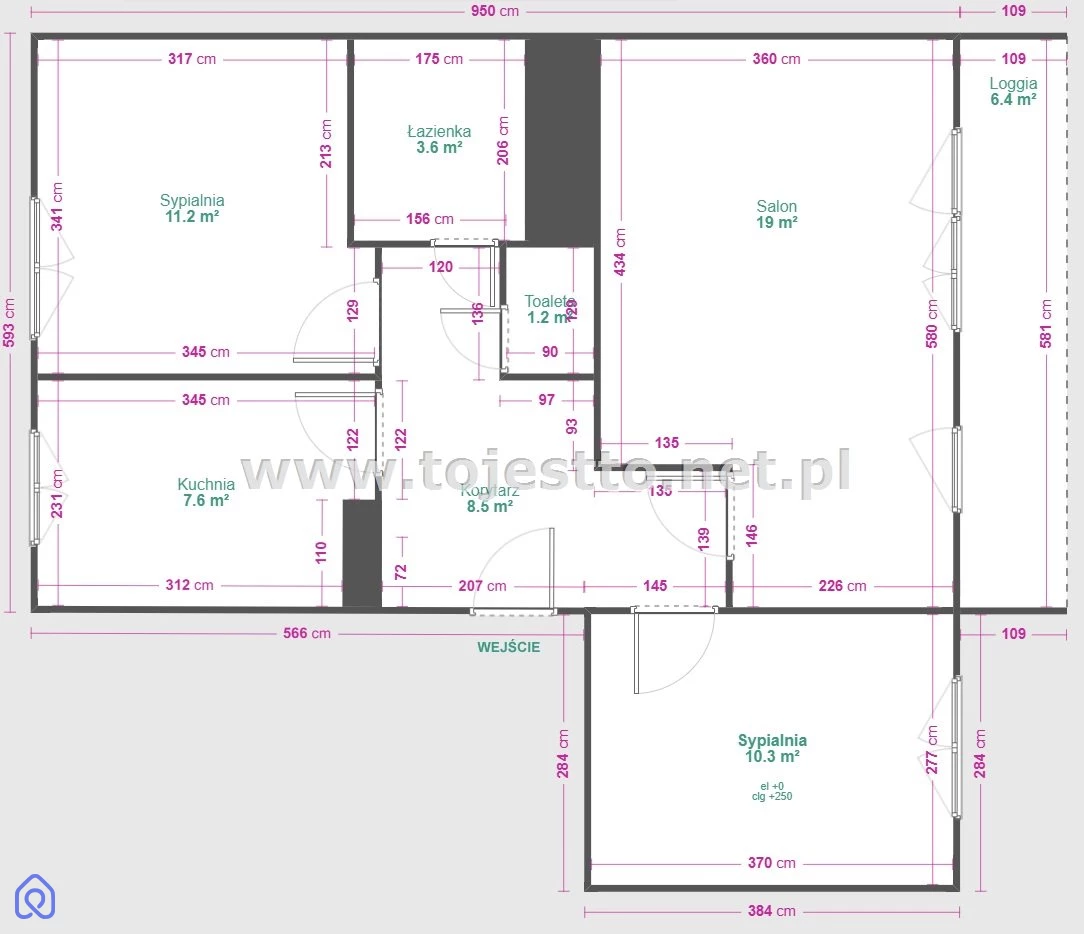 salon powierzchnia ok. 19,00m2