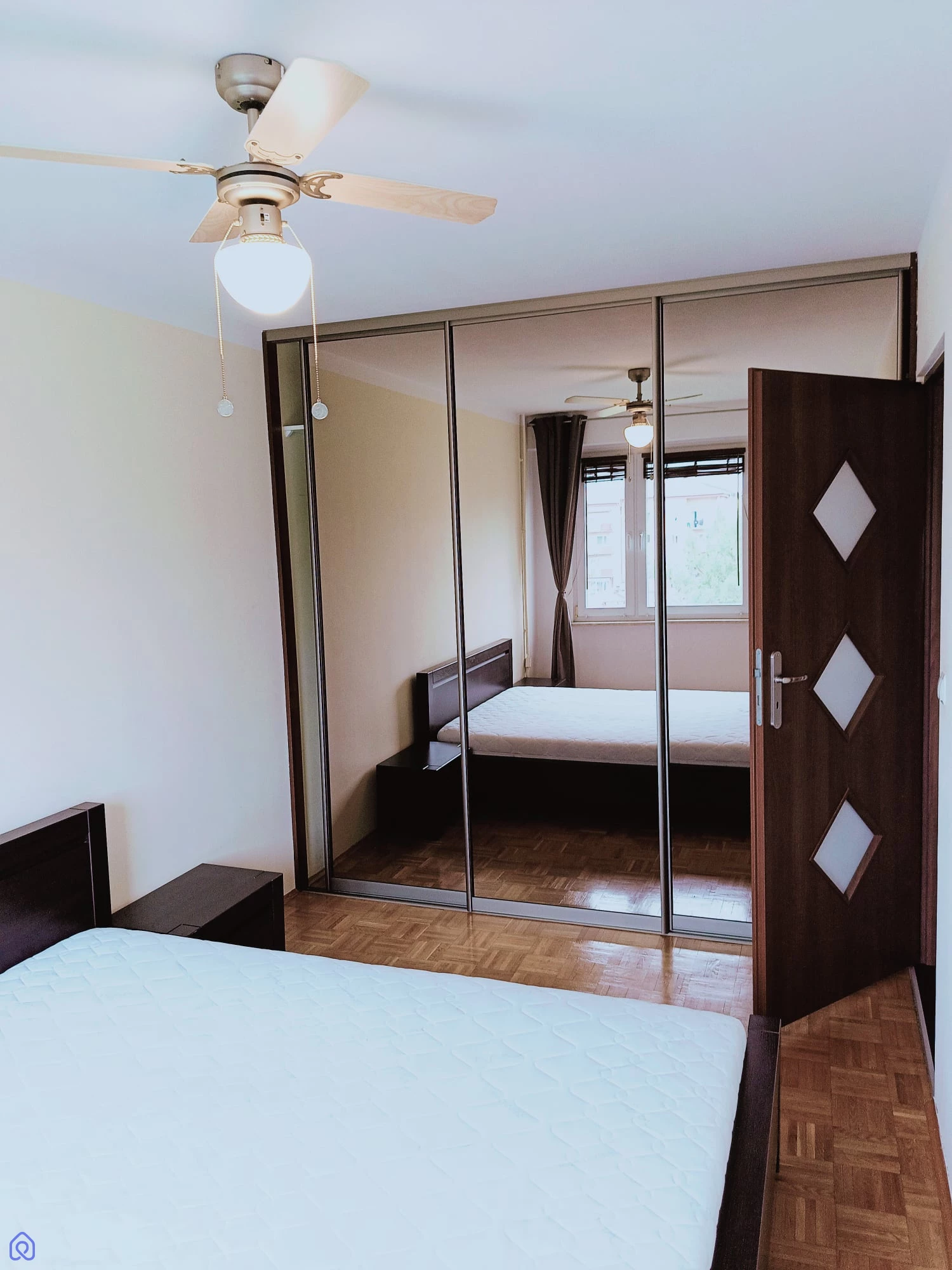 Dwa pozostałe mniejsze mogą służyć jako pokój dla dzieci oraz sypialnia z szafą wnękową wyposażona w lustra na drzwiach przesuwnych. Kuchnia widna w kwadracie, posiada meble w zabudowie oraz kuchenkę gazową.