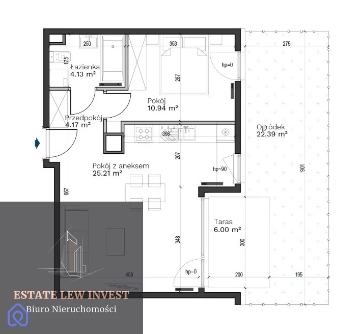 Przemyślany układ: Mimo kompaktowego metrażu, mieszkanie oferuje dwa oddzielne pokoje, co pozwala na wygodne zaaranżowanie przestrzeni do życia i pracy.