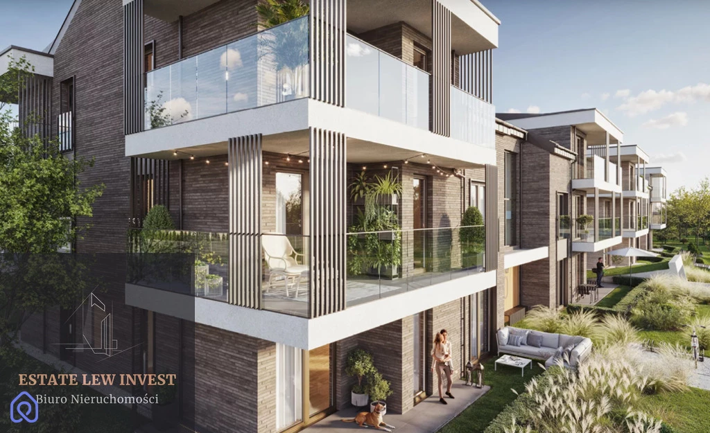 Wykończenie: Budynki cechuje stonowana i elegancka architektura. Elewacje z płytki klinkierowej i szklane balustrady podkreślają prestiżowy charakter inwestycji.