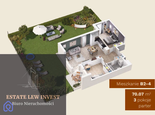 The apartment selection is diverse. Available units range from 2, 3, and 4 rooms, ranging in size from 37 to 130 m² . Each apartment has additional space in the form of a balcony, terrace (up to 130 m²), or green garden (up to 261 m²).