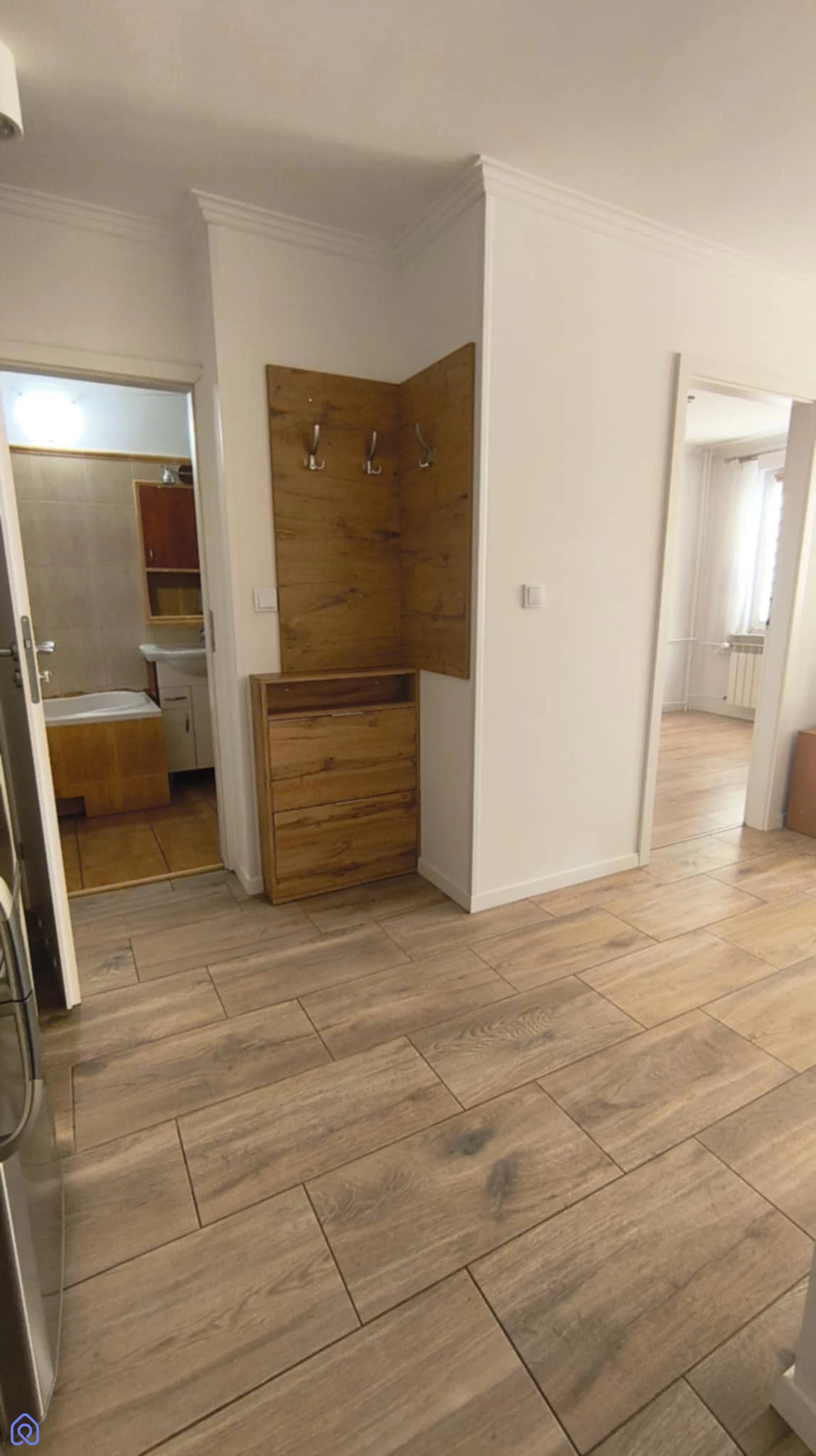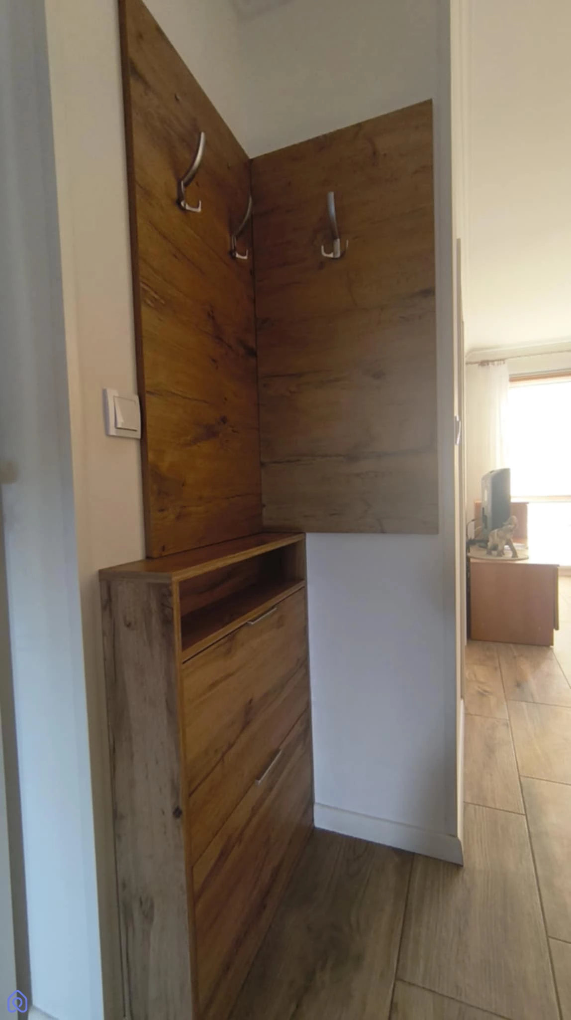 - praktycznego przedpokoju zaopatrzonego w szafką na obuwie, oraz lustro.