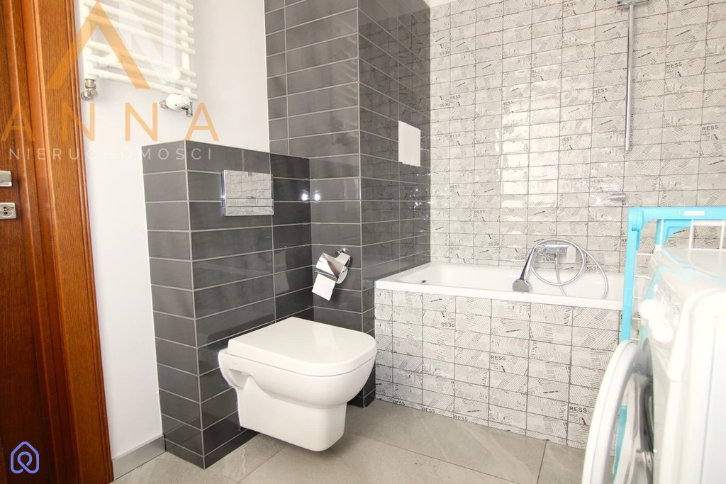 - łazienka wyposażona w toaletę WC, z wanną i pralką,
