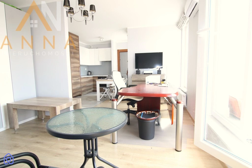 - w mieszkaniu znajduje się stolik do kawy oraz kanapa,