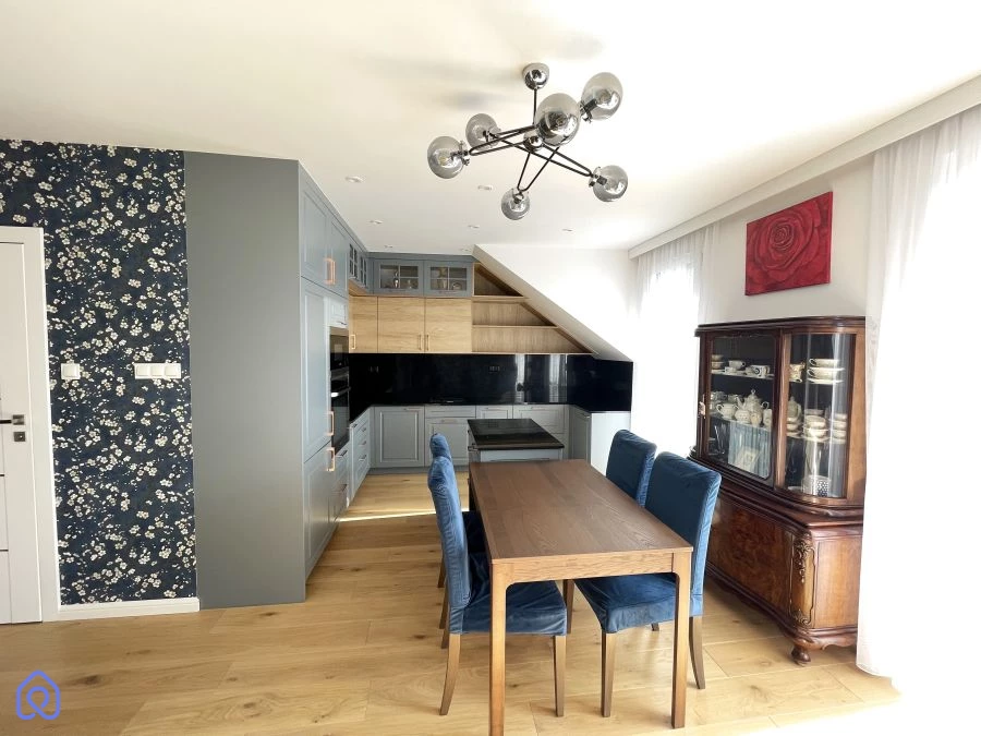 Sprzedam wyjątkowe bezczynszowe mieszkanie o powierzchni 63 m2 położone w jednej z najbardziej malowniczych części Olsztyna - zaledwie 5 minut spacerem od dwóch jezior: Ukiel i Tyrsko, a także w pobliżu lasów i licznych ścieżek rekreacyjnych, idealne dla osób ceniących bliskość natury i miejską wygodę. Położone na piętrze nowoczesnego domu jednorodzinnego w zabudowie szeregowej z 2023 r. Najważniejsze atuty: Bliskość natury: dwa jeziora w bezpośrednim sąsiedztwie - idealne do spacerów, biegania czy porannej kawy nad wodą. Niskie koszty ogrzewania: ogrzewanie podłogowe ze sterownikiem, piec gazowy dwufunkcyjny - mieszkanie jest energooszczędne i ekonomiczne w utrzymaniu. Ogromna przestrzeń do przechowywania: wyłączne prawo do użytkowania strychu nad mieszkaniem - idealny na walizki, sprzęt sportowy czy rzeczy sezonowe - oraz osobne, duże pomieszczenie gospodarcze z piecem i regałami. Funkcjonalny układ: Mieszkanie jest dwustronne. Przestronny salon z jadalnią połączony jest z dużą kuchnią z wyspą, tworząc otwartą i jasną strefę dzienną - idealną do wspólnego gotowania i spotkań z rodziną czy przyjaciółmi. Sypialnia master z garderobą oraz druga sypialnia położone są po przeciwnej stronie części dziennej. Dodatkowe udogodnienia Duży balkon 7,5 m2 od strony południowo-zachodniej, z elektryczną markizą. Kuchnia z granitowymi blatami i sprzętami Samsung na gwarancji (płyta indukcyjna, piekarnik, mikrofalówka, zmywarka, lodówka z zamrażarką). Łazienka z ogrzewaniem podłogowym, prysznicem z odpływem liniowym, bidetem i zabudową stolarską. Drewniana dębowa podłoga w całym mieszkaniu, okna trzyszybowe z moskitierami, elektryczne rolety zewnętrzne, szybki internet światłowodowy. Prywatne miejsca postojowe przed budynkiem, działka 320 m2 we współwłasności. To mieszkanie łączy wygodę nowoczesnej aranżacji z bliskością natury. Gotowe do wprowadzenia i oferujące możliwości dalszej adaptacji pod własne potrzeby. Świetna lokalizacja: sklepy, szkoły, restauracje, komunikacja autobusowa i ścieżki rowerowe w zasięgu krótkiego spaceru.