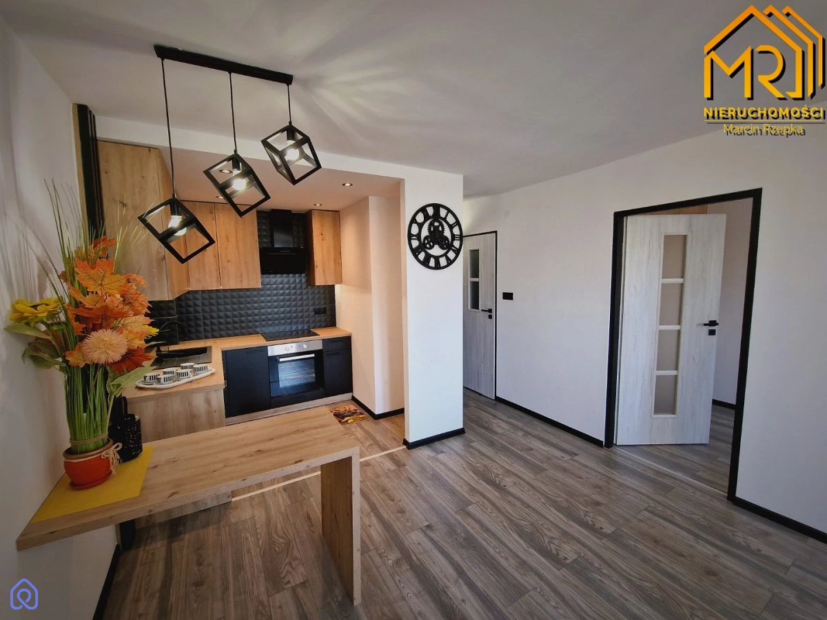 Mieszkanie jest częściowo umeblowane i wyposażone w nowoczesny sprzęt AGD. Składa się z przestronnego salonu z aneksem kuchennym, oddzielnej sypialni, łazienki z prysznicem oraz przedpokoju.