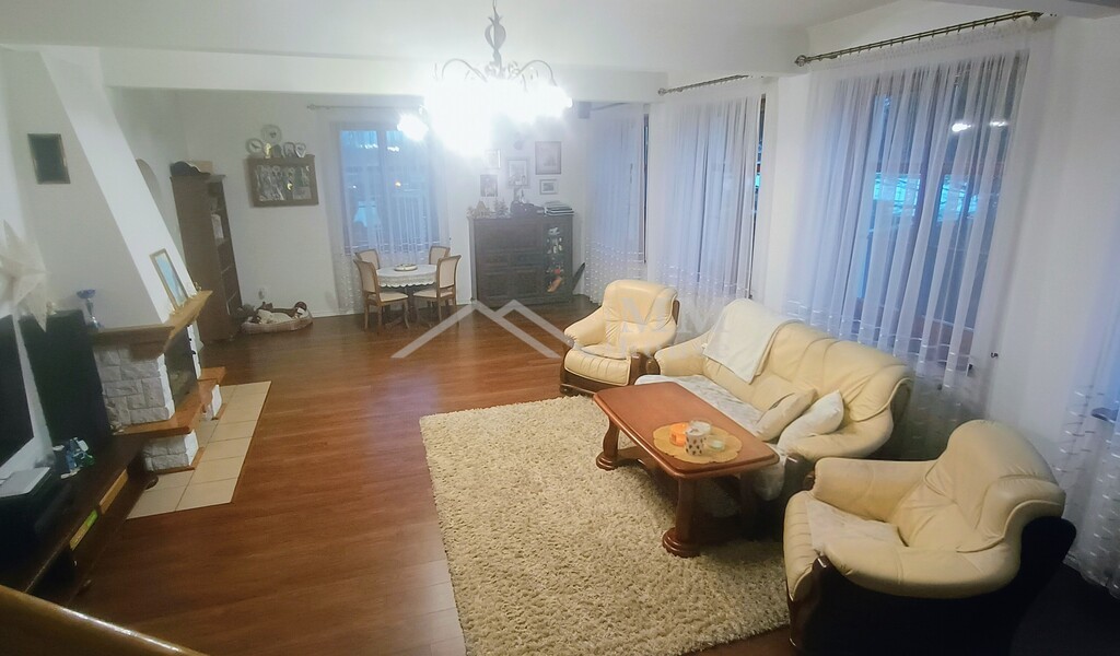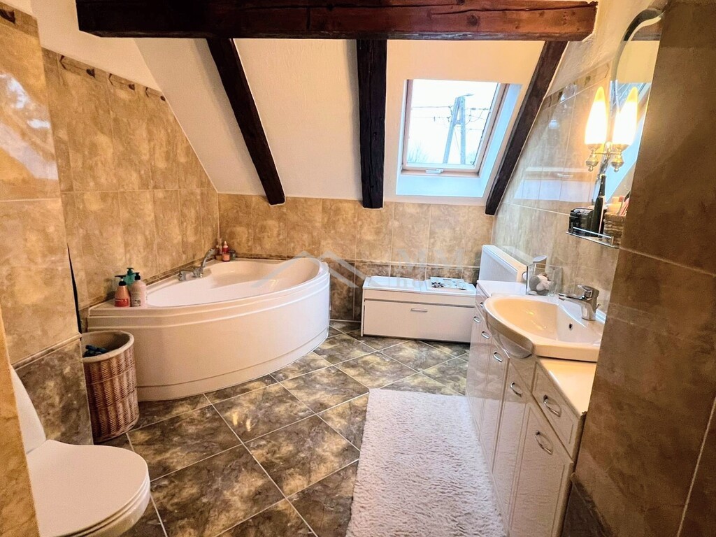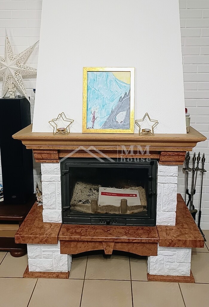 Przestronny salon z kominkiem – serce domu, idealne miejsce do wypoczynku, bardzo jasne i przytulne, na podłodze drewniane panele Kuchnia – w pełni funkcjonalna, z ogrzewaniem podłogowym, meble na wymiar z dębowymi frontami, wbudowany piekarnik i „mikrofalówka”, rok temu kupiona zmywarka oraz płyta indukcyjna, Przedpokój – z ogrzewaniem podłogowym, komfortowy w codziennym użytkowaniu. Łazienka – nowoczesna, z prysznicem, również z ogrzewaniem podłogowym. Poddasze: