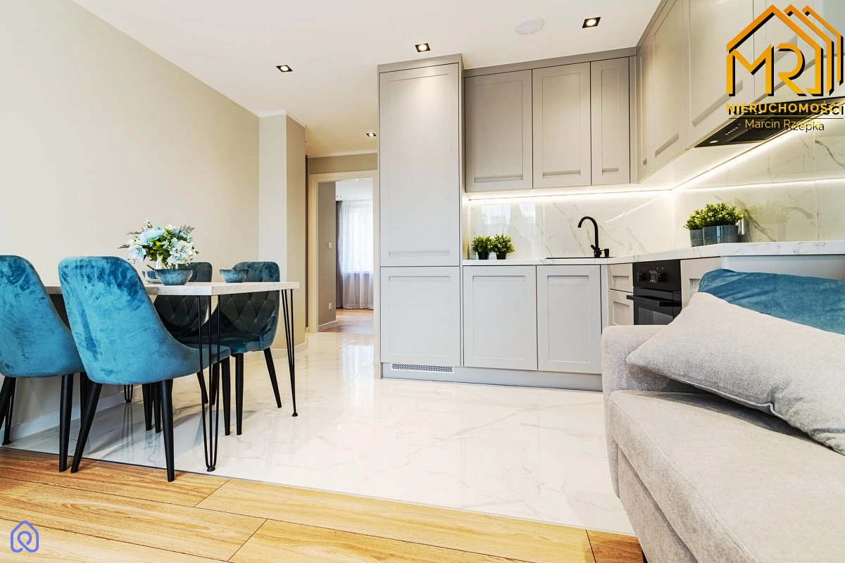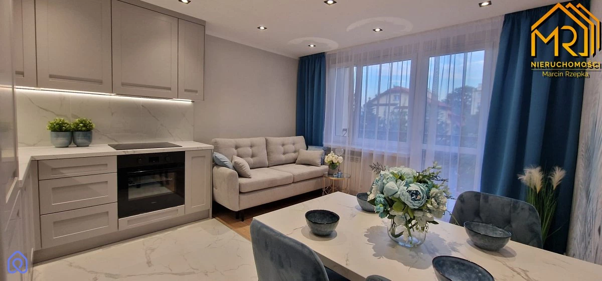 Mieszkanie przy ul. Św. Faustyny Do sprzedaży prezentujemy mieszkanie po generalnym remoncie przy ul. Św. Faustyny w Tarnowie. Mieszkanie o dokładnej powierzchni 40,12 m2 usytuowane w niskim bloku na pierwszym piętrze w trzy piętrowym bloku. Do mieszkania przynależy loggia o pow. 3 m2, piwnica pow. 4 m2 oraz pomieszczenie gospodarcze znajduje się na tym samym piętrze co mieszkanie. Czynsz w wysokości 450 zł. Rozkład mieszkania: W skład lokalu wchodzi salon z aneksem kuchennym, dwa pokoje, łazienka oraz przedpokój. Kuchnia z w pełni umeblowana i wyposażona w nowe sprzęty AGD tj. lodówka, piekarnik, zmywarka, okap. W salonie wygodna kanapa oraz stół z krzesłami. Łazienka wyposażona w prysznic, WC oraz umywalkę nablatową, wykończona w kolorystyce drewnopodobnej, bieli i czerni. Dwie pokoje pozostawione do własnej aranżacji. Cena: 399 999 zł. Wszelkie szczegóły po bezpośrednim kontakcie telefonicznym 600 576 376 Lokalizacja: Centrum miasta, w pobliżu szkoła podstawowa, przedszkola, sklepy, kościół. Obok bloku dużo zieleni oraz plac zabaw.