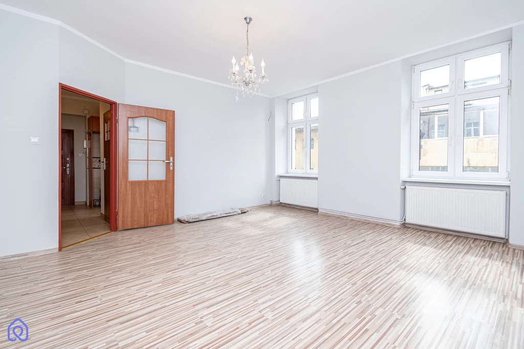 Na sprzedaż przestronne trzypokojowe mieszkanie o powierzchni 58,13 m², usytuowane na 1. piętrze w bloku z cegły w centrum miasta.