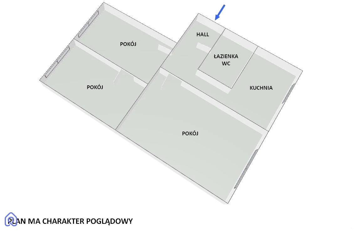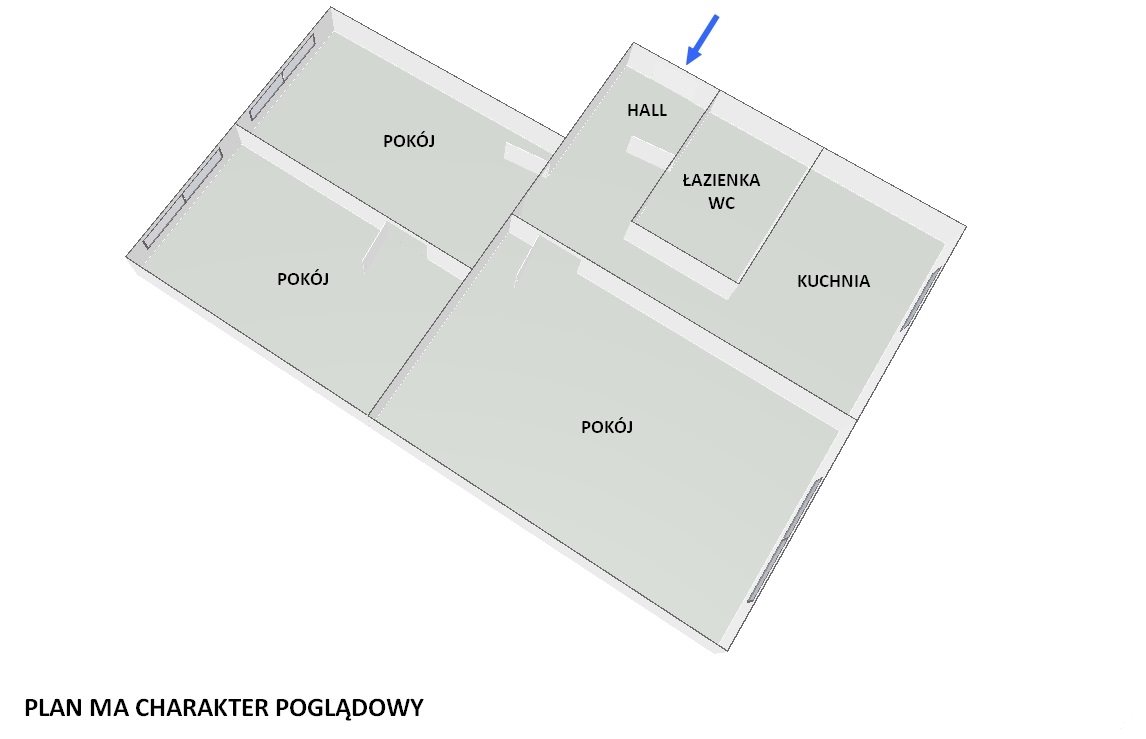 Mieszkanie składa się z przestronnego salonu, oddzielnej kuchni, dwóch oddzielnych sypialni - z jednej przechodzimy do drugiej, łazienki z wc i przedpokoju.