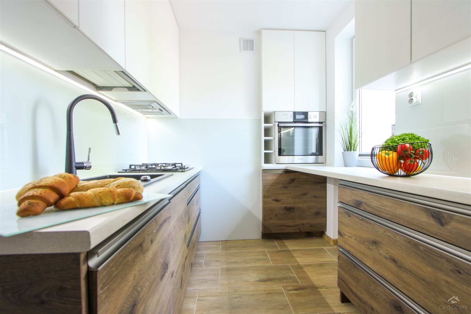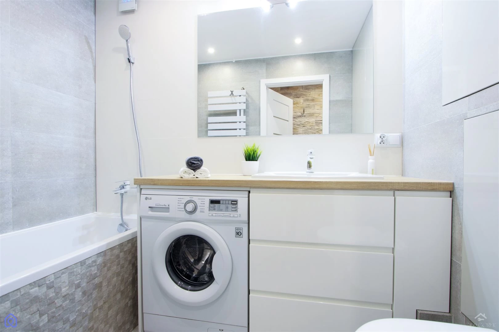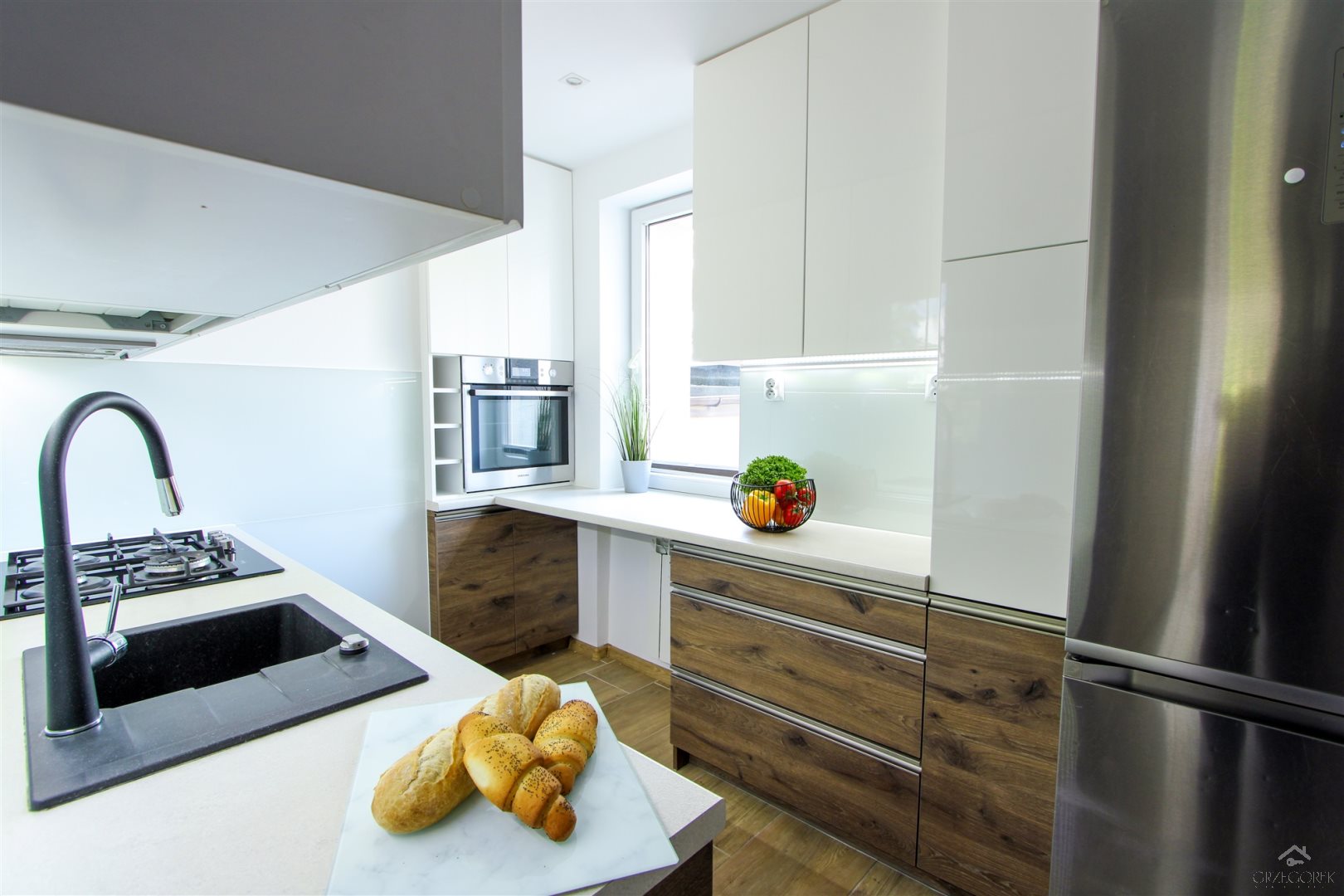 Standard mieszkania bardzo dobry - nadaje się do wprowadzenia. Wymieniono instalację elektryczną oraz hydrauliczną. Lokal wykończony jest w neutralnych i przyjemnych kolorach: nowe panele podłogowe, nowoczesna łazienka ze sporą ilością szafek do przechowywania oraz kuchnia ze stałą zabudową i sprzętami w zabudowie - piekarnikiem umieszczonym wyżej ze względu na komfort użytkowania, dużą zmywarką w zabudowie, płytą, okapem i wolnostojącą lodówką Samsung. W jednej z sypialni znajduje się duża szafa w zabudowie stałej, biurko, a w drugiej szafa wolnostojąca, szafka RTV, rozkładana kanapa. W salonie znajduje się wygodny stół z krzesłami, narożna rozkładana kanapa, stolik kawowy, szafka pod telewizor.