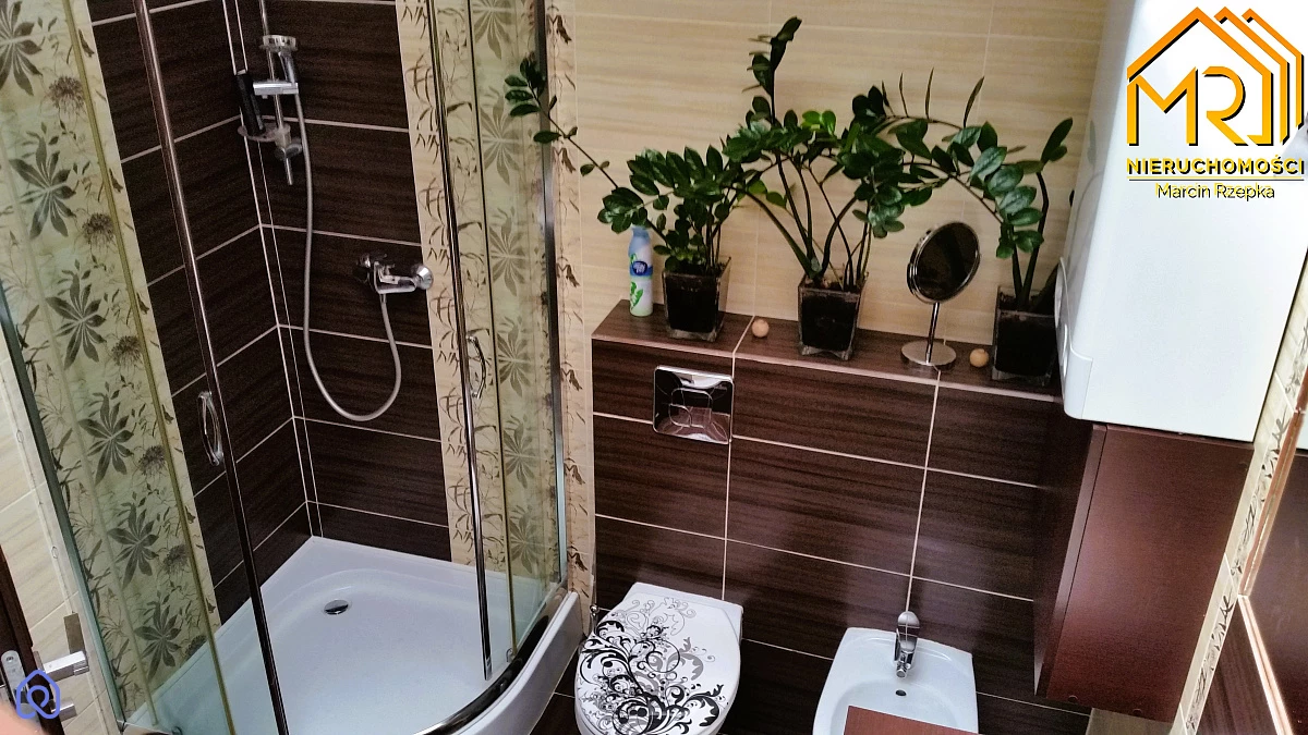 Mieszkanie posiada również łazienkę z prysznicem oraz wanną, co zapewnia wygodę i funkcjonalność.