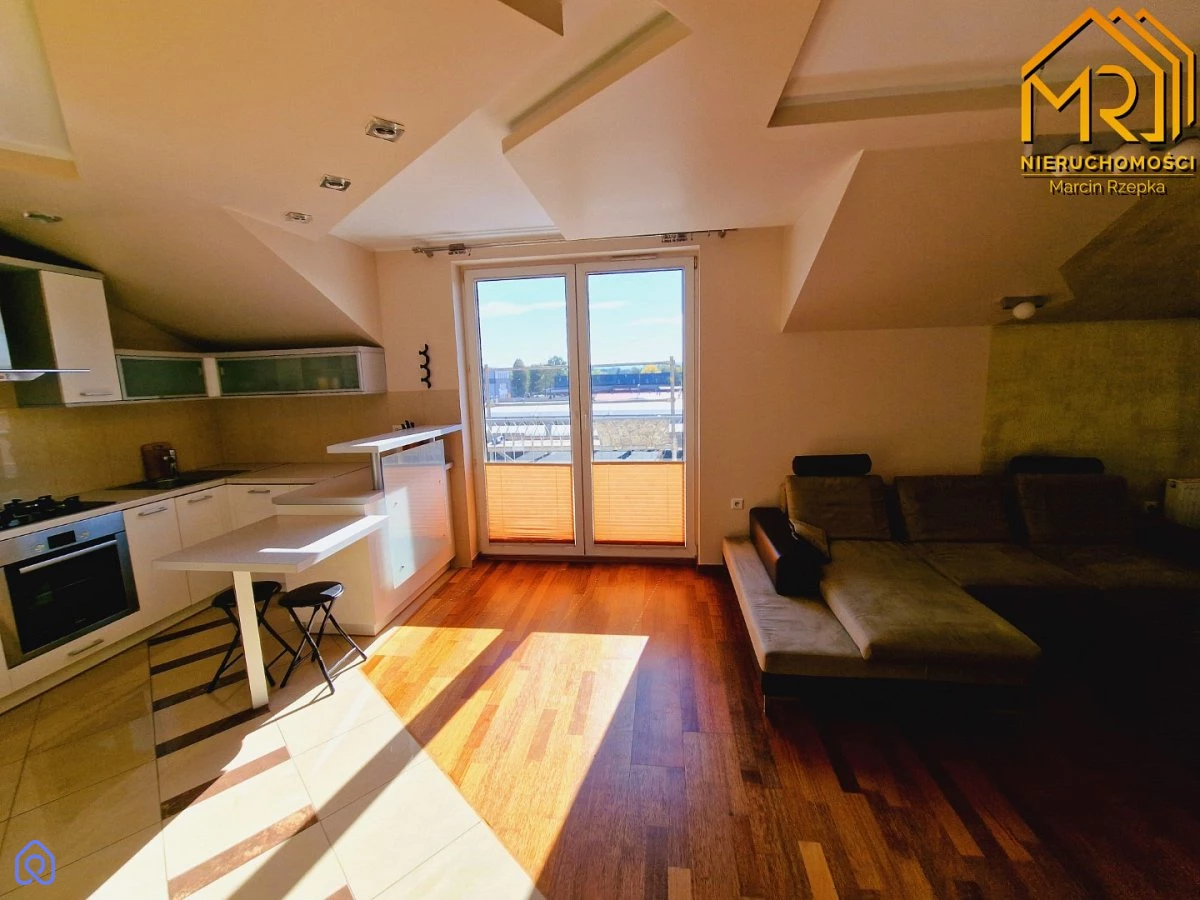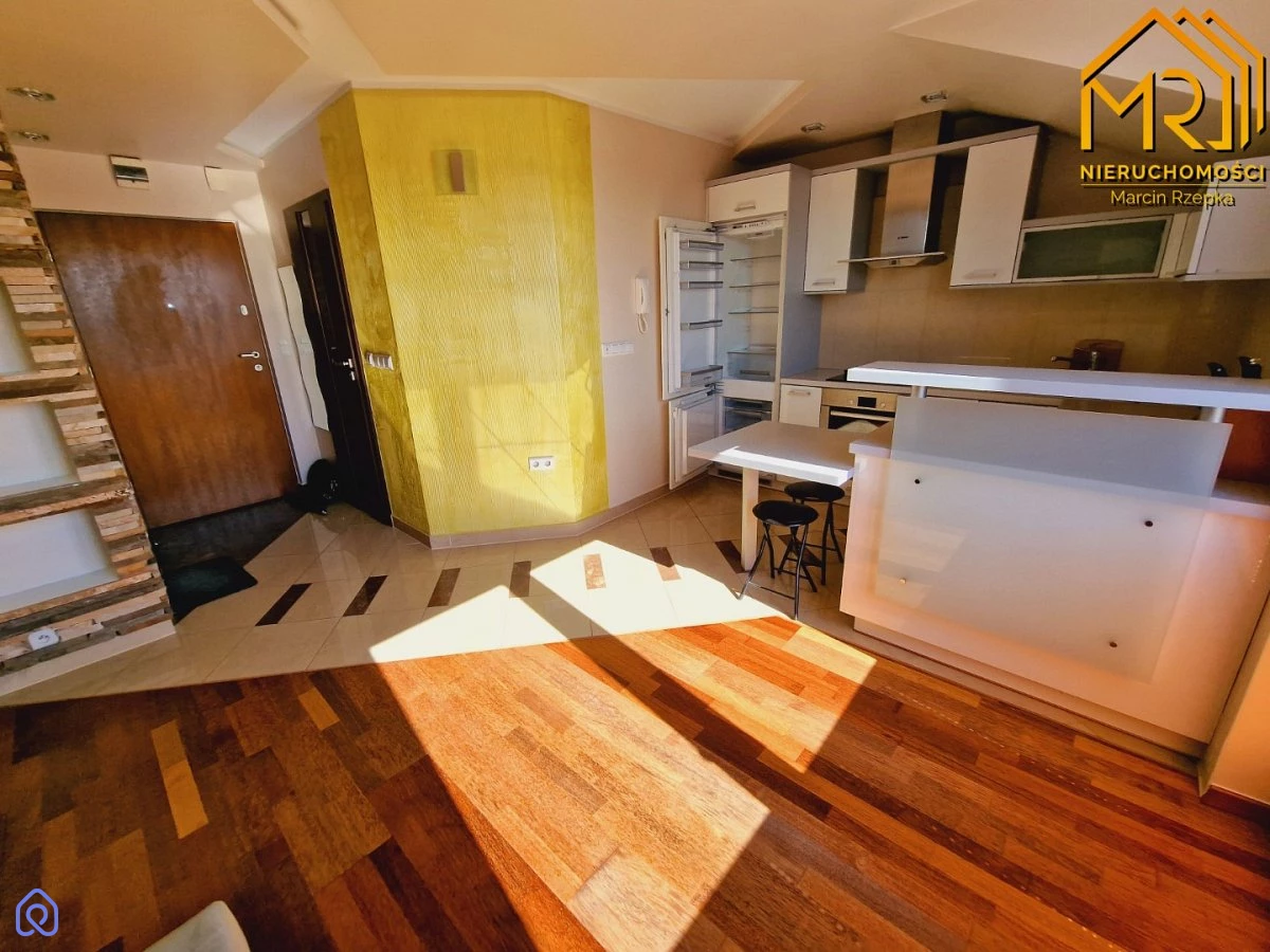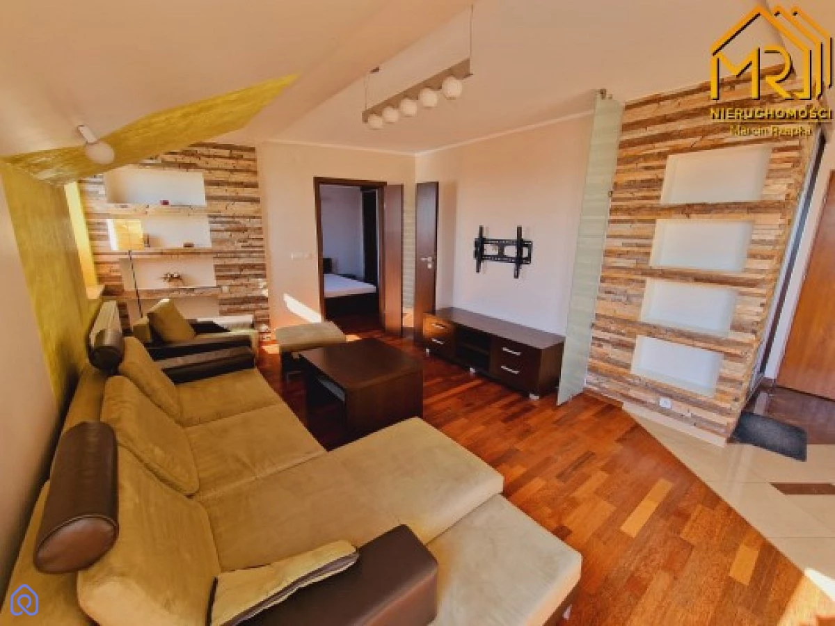 Nieruchomość składa się z przestronnego salonu, połączonego z otwartym aneksem kuchennym. Salon jest dobrze doświetlony dzięki dużym oknom z wystawą na południe. W skład lokalu wchodzi także jeden dodatkowy pokój, który wykorzystany jako sypialnia, mieści się w nim duża przesuwna szafa w zabudowie. W łazience mieści się narożna wanna, wc oraz pralka.