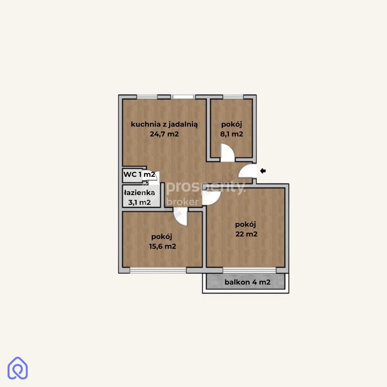 3 pokoje - dzienny 22 m2, sypialnia 15,6 m2, sypialnia 8,1 m2 – w razie potrzeby do wydzielenia możliwy jest jeszcze jeden pokój - zgodnie z pierwotnym projektem są 4 pokoje.