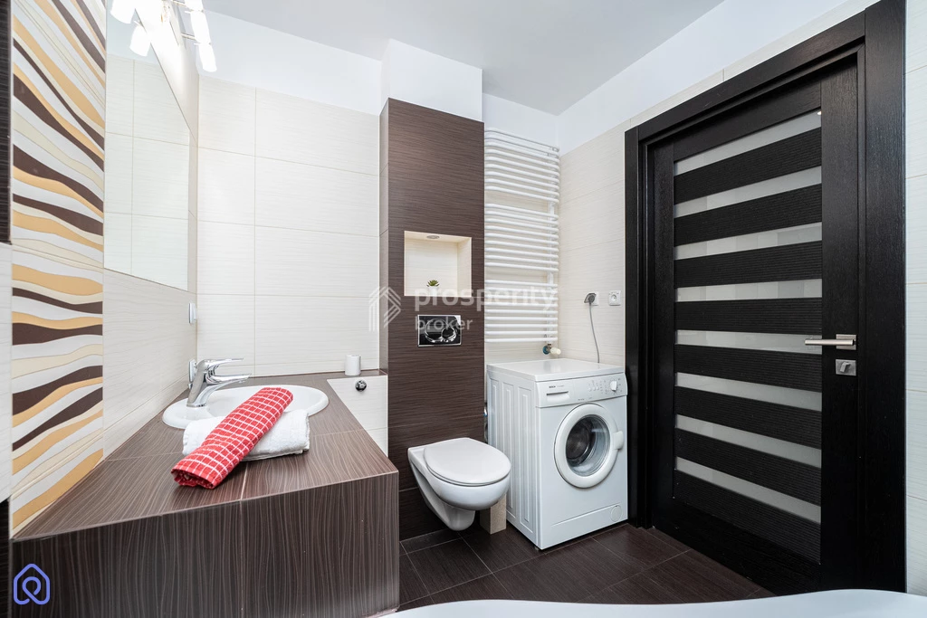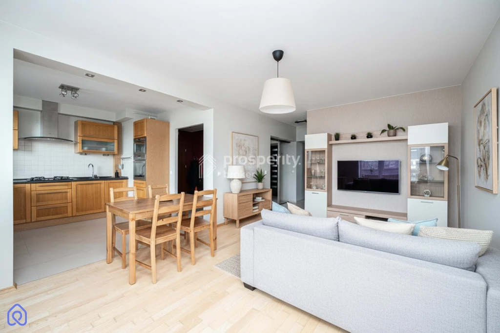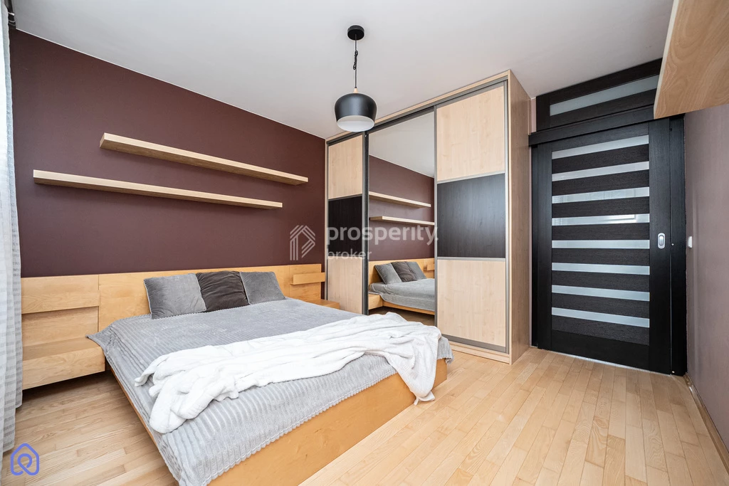 Mieszkanie jest wyjątkowo ciche. Nie wymaga żadnego dodatkowego wkładu – jest gotowe do zamieszkania. W cenie nieruchomości zawarte jest całe wyposażenie widoczne na zdjęciach (zabudowa kuchenna, garderoba, szafy, łóżko, sprzęt AGD, pralka, klimatyzacja). Na podłodze w pokojach jest parkiet jesionowy.