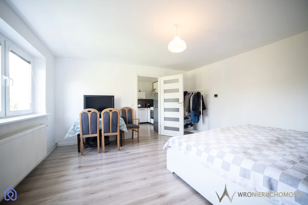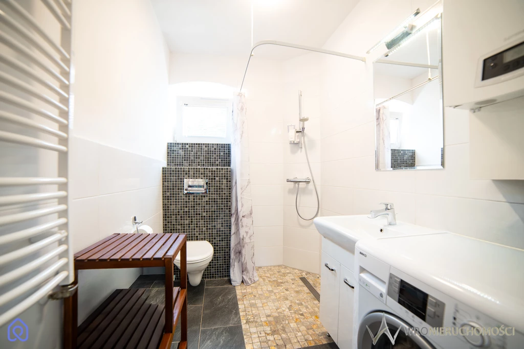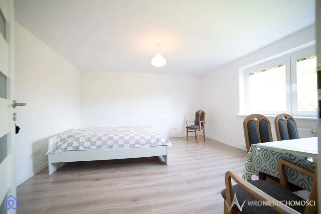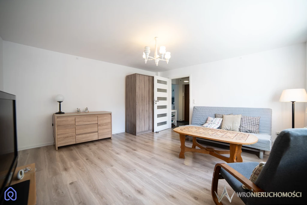 Układ pomieszczeń: - dwa niezależne pokoje (ok. 20 m² każdy), - duża, jasna kuchnia z pełnym wyposażeniem (ok. 15 m²) i wyjściem/widokiem na ogródek, - łazienka z WC i kabiną prysznicową, - funkcjonalny przedpokój. Do mieszkania przynależy piwnica o powierzchni ok. 9 m² oraz dwa ogródki do wyłącznego użytku właściciela.
