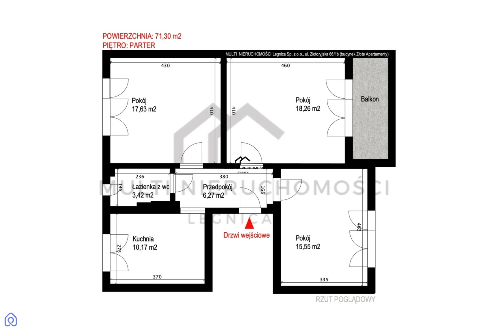 Wszystkie zdjęcia i rysunki, teksty oraz wszystkie inne informacje opublikowane na niniejszych stronach podlegają prawom autorskim MULTI NIERUCHOMOŚCI Legnica Sp. z o.o. Wszelkie kopiowanie, dystrybucja, elektroniczne przetwarzanie oraz przesłanie zawartości bez zezwolenia zabronione. Zamieszczony rzut jest przybliżony.