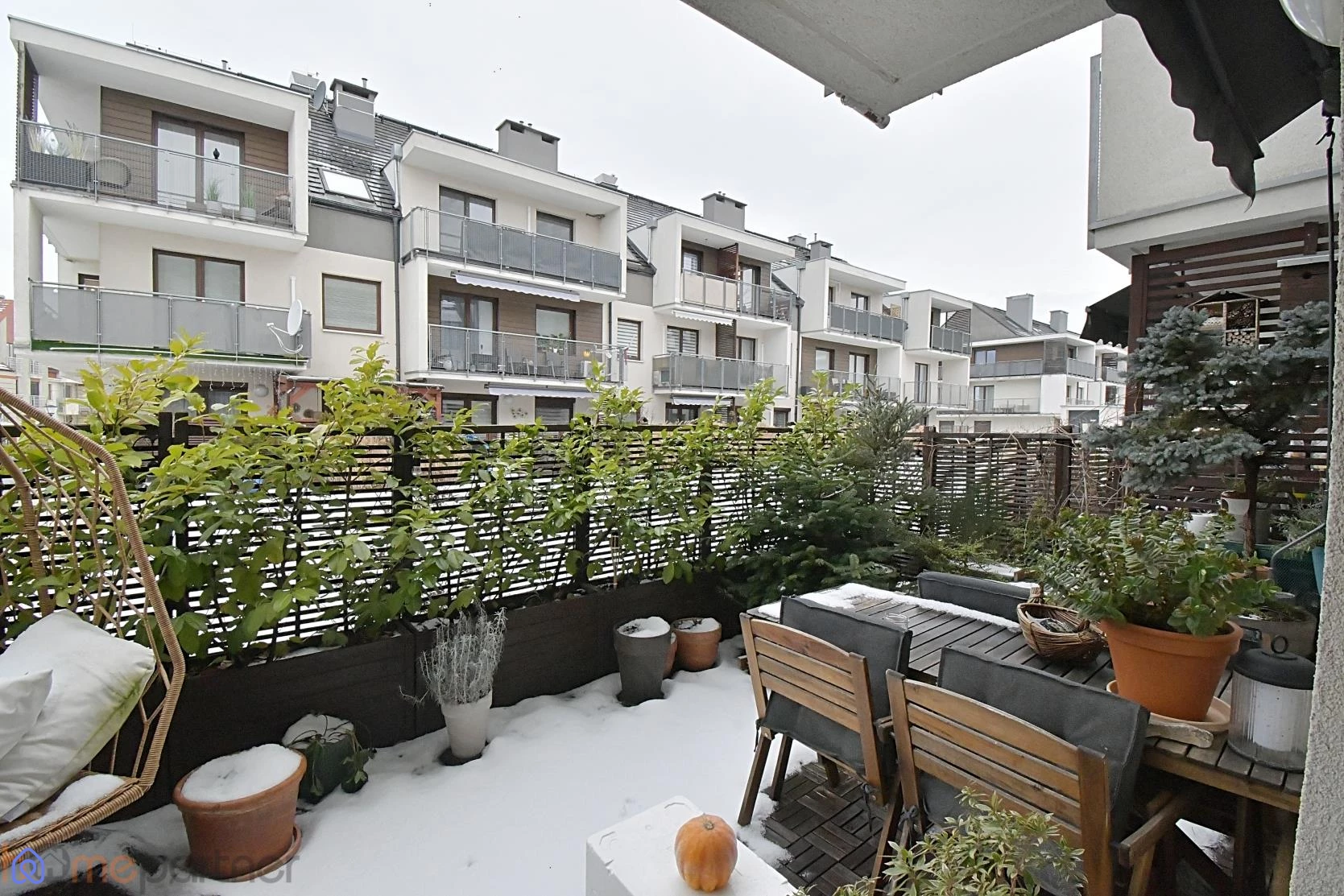 Z tarasu wyjście przez furtkę bezpośrednio na zamknięte patio.