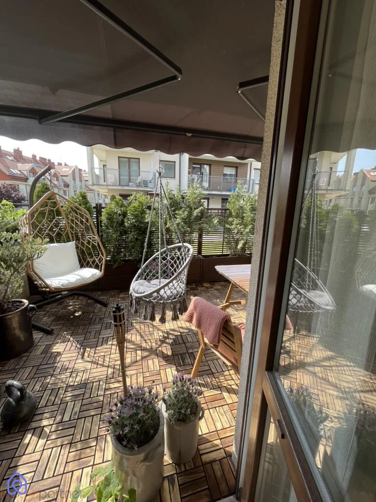 Mieszkanie wykończone w podwyższonym standardzie, funkcjonalne i zadbane. Panele podłogowe o wysokiej klasie ścieralności, klimatyzacja w salonie, rolety zewnętrzne elektryczne, markiza na tarasie, ogrzewanie grzejnikowe z termostatycznymi głowicami (sterowanie z aplikacji), nowe drzwi wewnętrzne Porta (składane), drzwi tarasowe antywłamaniowe, naturalne płyty betonowe na ścianach (impregnowane), videowizjer, oświetlenie sterowane pilotem w jednym z pokoi.