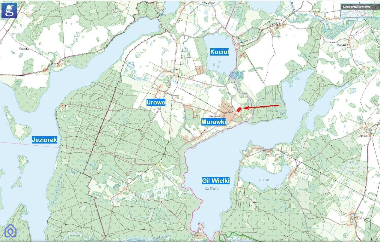 Działka położona jest w odległości ok. 300 m od jeziora Gil Wielki. Jezioro to jest bardzo czyste, z wieloma dzikimi plażami, i zakazem pływania z silnikami spalinowymi- co gwarantuje spokój i ciszę.