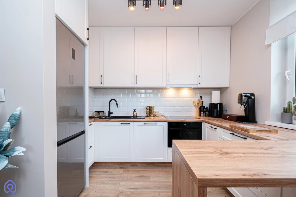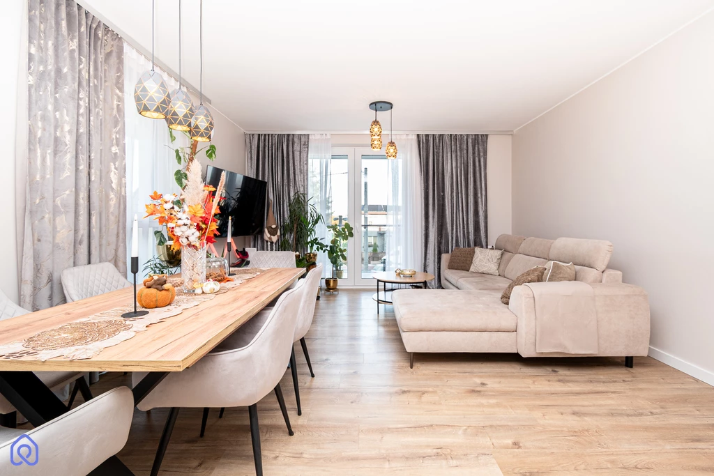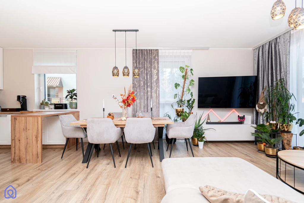 • przestronny salon z aneksem kuchennym – idealny do wspólnego gotowania i wieczornego relaksu,