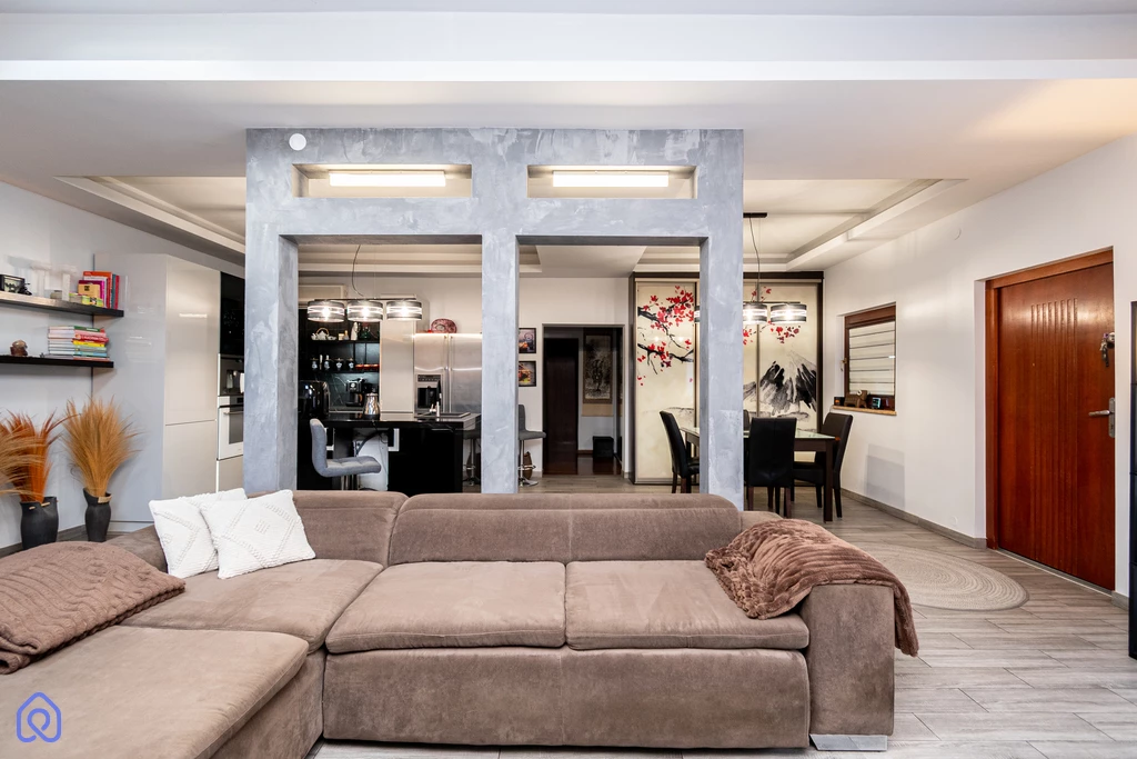 przestronny salon połączony z kuchnią,