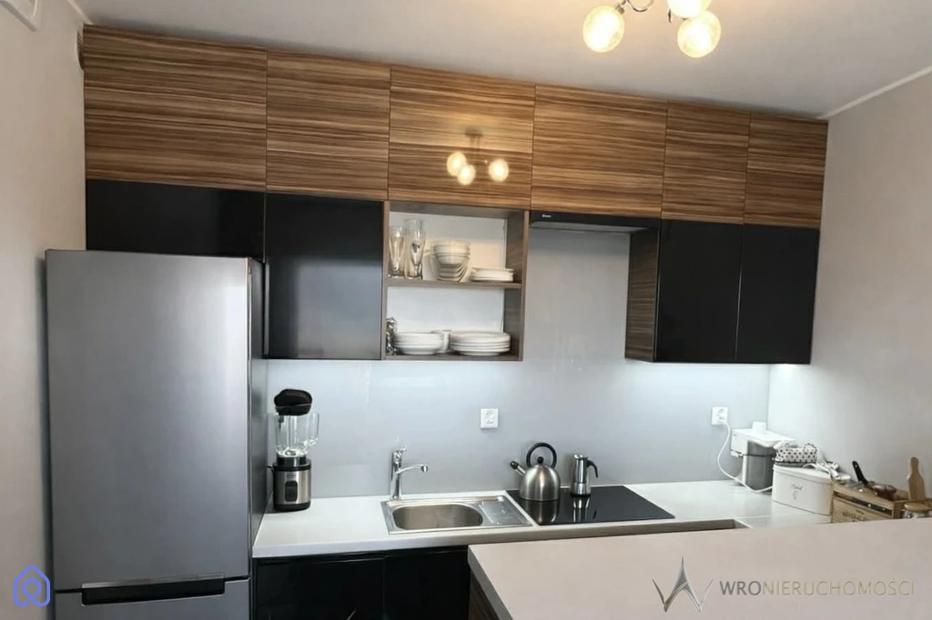 Kuchnia jest w pełni wyposażona w niezbędny sprzęt AGD. Mieszkanie jest umeblowane i gotowe do zamieszkania.