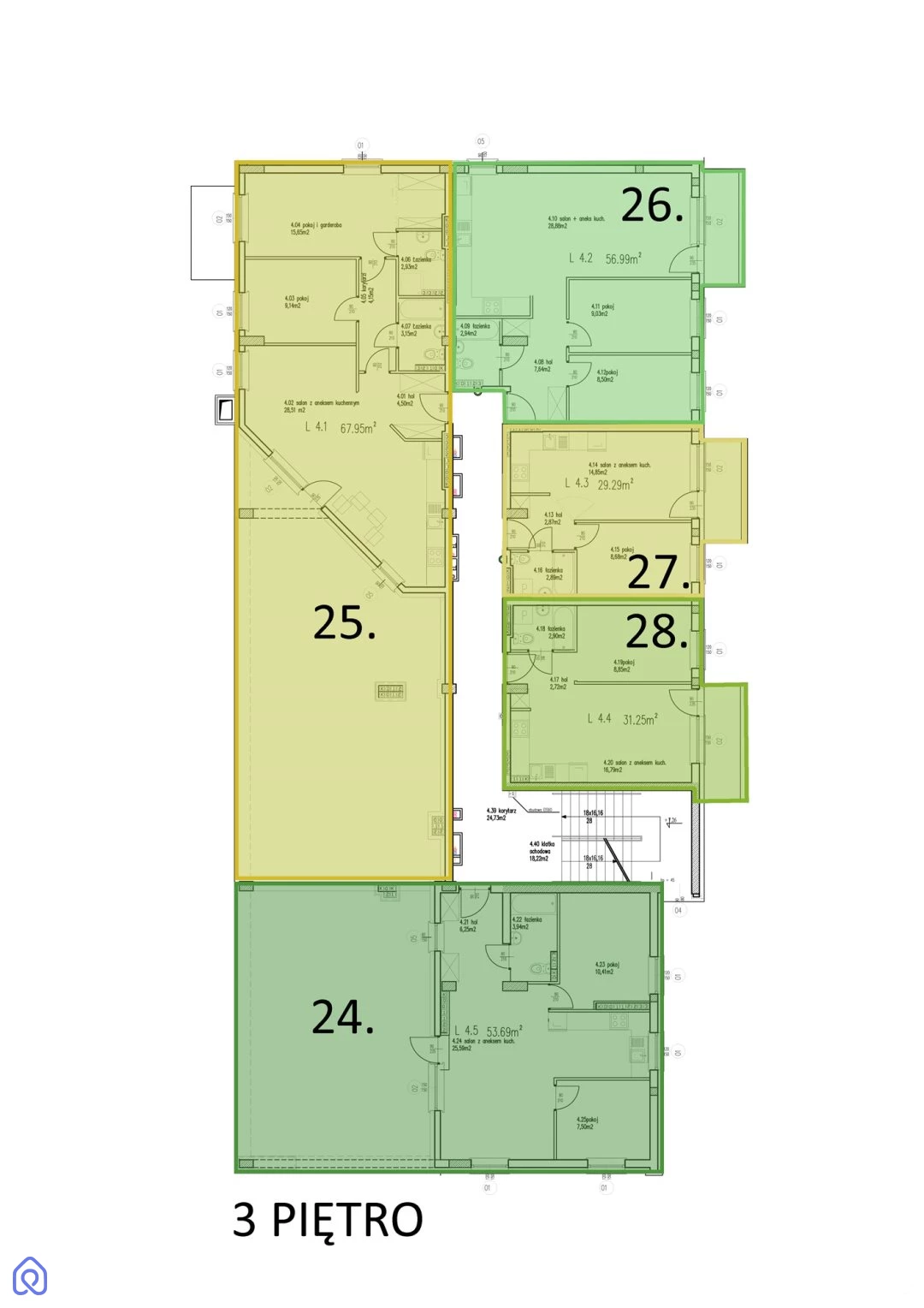 Mieszkanie nr 25 położone jest na trzecim piętrze.