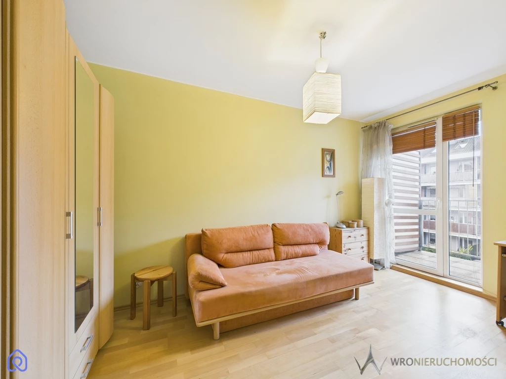 Układ mieszkania: Przestronny salon z otwartą kuchnią,Sypialnia,Łazienka z prysznicem,Przedpokój z miejscem do przechowywania,Balkon - wyjście z salonu i sypialni.