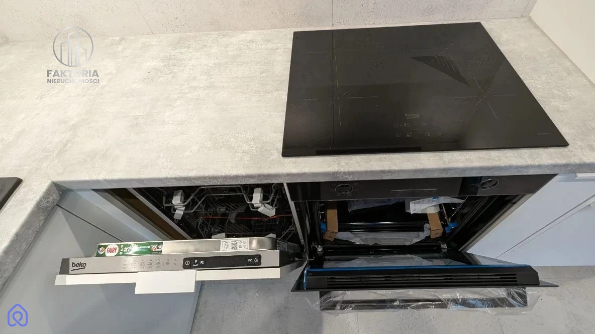>Mieszkanie wykończone i sprzedawane z widocznym na zdjęciach wyposażeniem: stała zabudowa kuchenna wyposażona w sprzęt AGD - zmywarka, piekarnik, kuchnia indukcyjna, okap.