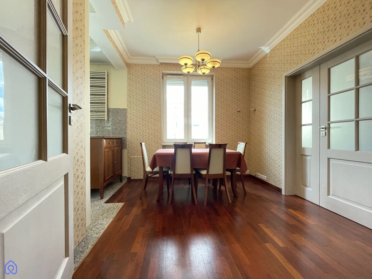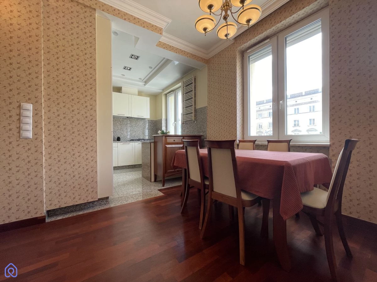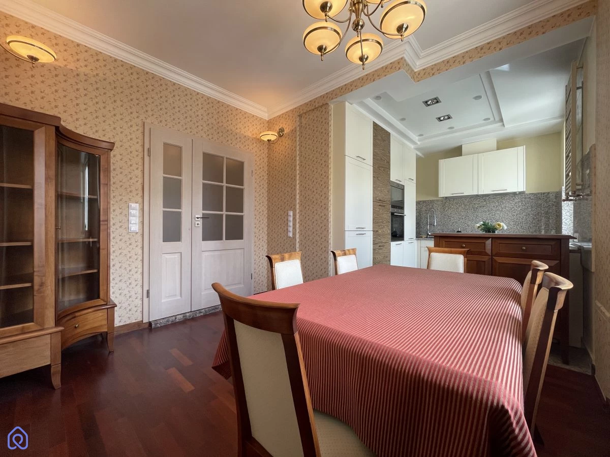 Wnętrza są jasne i dobrze doświetlone dzięki ekspozycji południowej. Wysokie sufity oraz subtelne detale tworzą klimatyczny charakter, który wyróżnia tę nieruchomość na tle innych ofert.