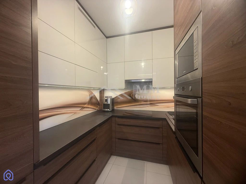 ✔ Otwarta kuchnia – elegancka zabudowa meblowa i wysokiej klasy sprzęty AGD (lodówka Electrolux, piekarnik Beko, płyta indukcyjna Amica, kuchenka mikrofalowa Samsung, zmywarka Beko, okap Beko, zlew i bateria marki Franke).