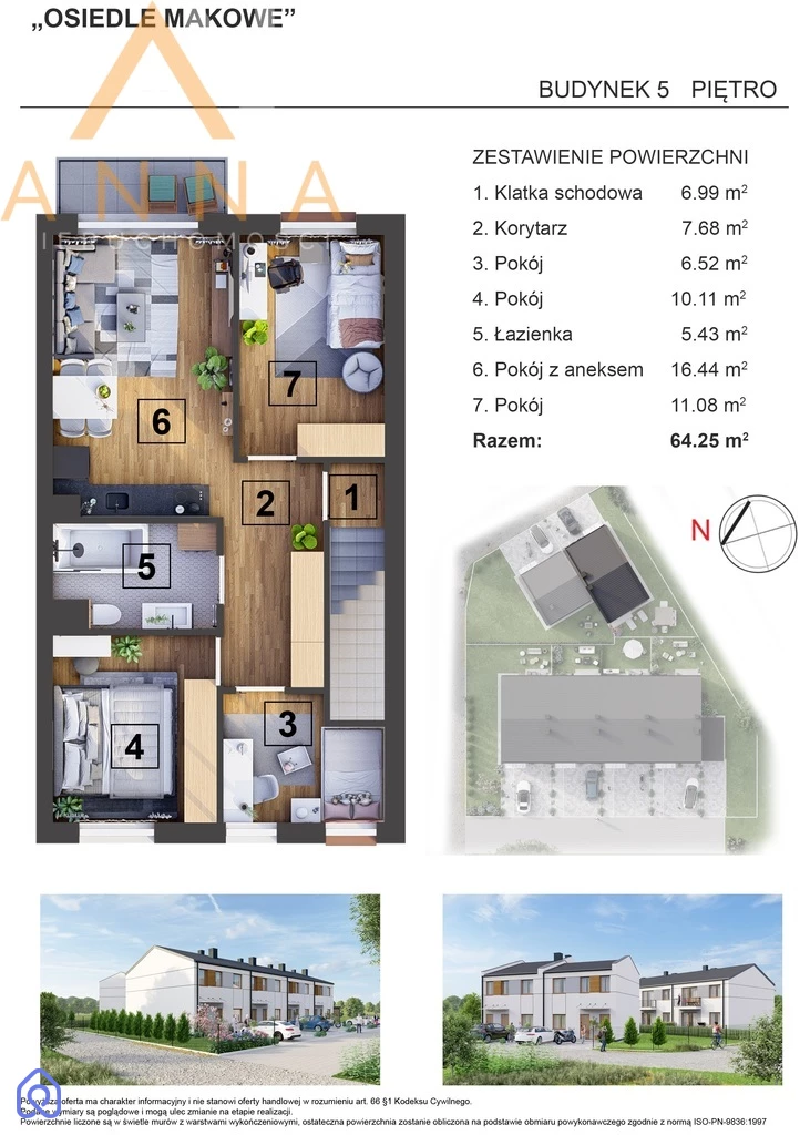 Mieszkanie na piętrze o łącznej powierzchni 64,25m2 mieszczące się na ogrodzonej działce w stanie deweloperskim lub po uzgodnieniu w stanie do zamieszkania!