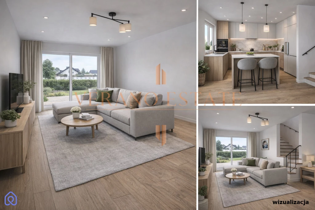 To propozycja dla osób poszukujących harmonii pomiędzy komfortem nowoczesnego domu a spokojem zielonego otoczenia, z jednoczesnym szybkim i wygodnym dojazdem do Warszawy.