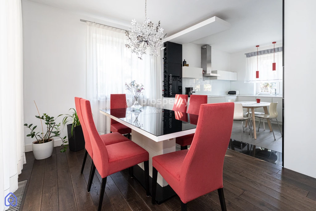 Spójna architektura, materiały najwyższej jakości, energooszczędne rozwiązania i doskonała komunikacja. Dom idealny dla rodziny, w pełni wyposażony i gotowy do wprowadzenia.