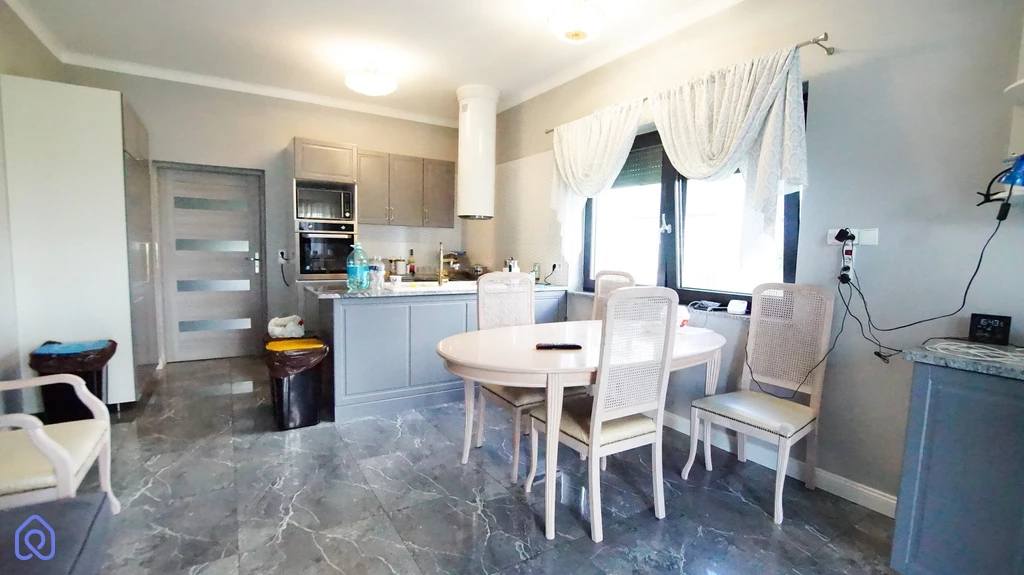 W wyposażeniu domu pozostają meble kuchenne w zabudowie oraz sprzęt AGD.
