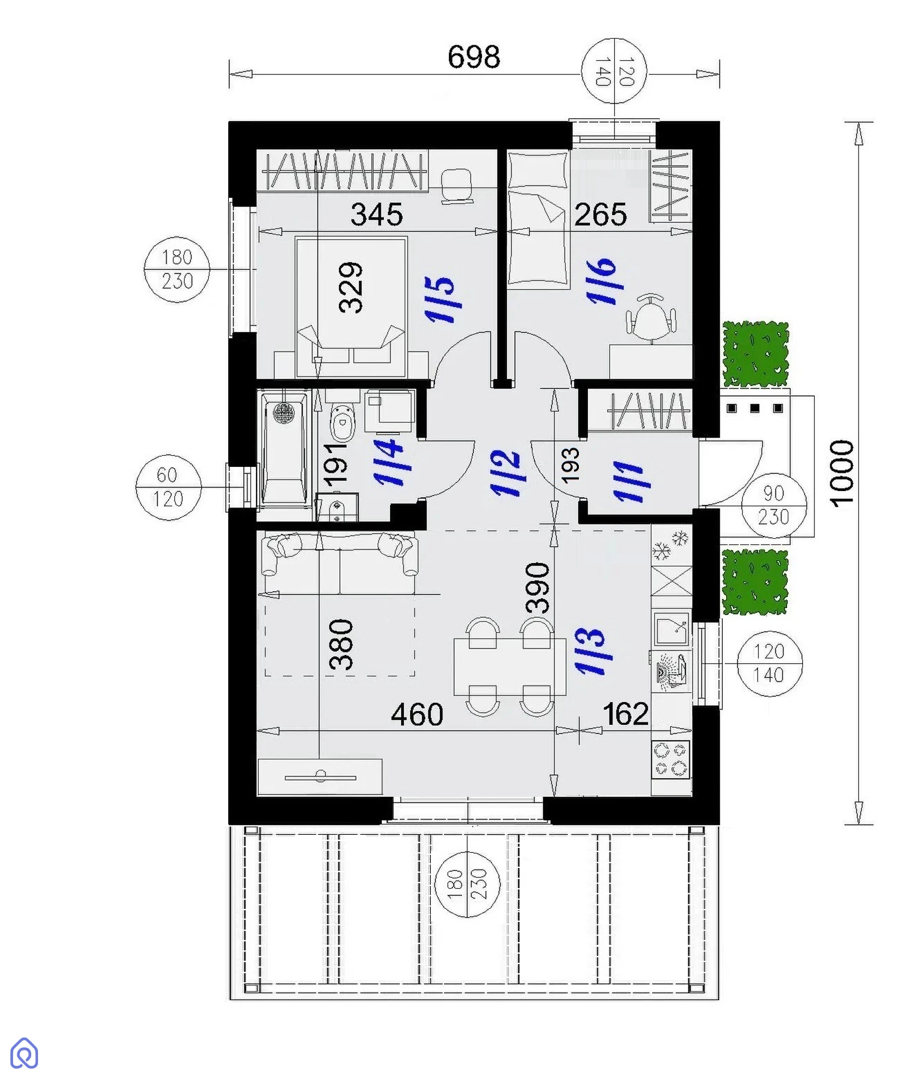 Wysoka jakość: używamy wyłącznie materiałów najwyższej klasy. Okna trzyszybowe, futryny licowane ze ścianami - wszystko dopracowane w każdym szczególe.