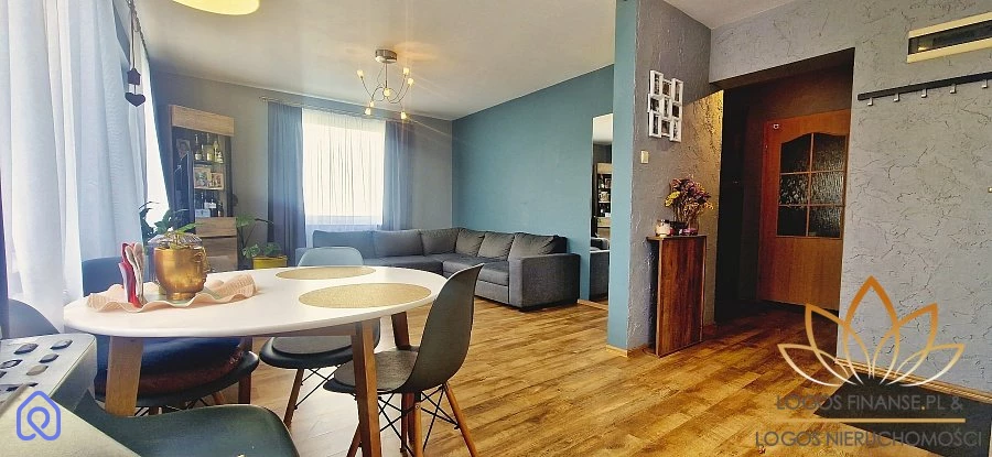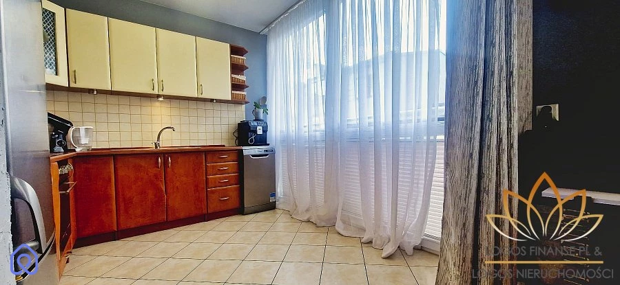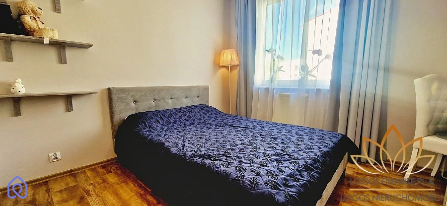 kuchni otwartej na salon, z dużym oknem umożliwiającym pełne doświetlenie pomieszczenia - pozostaje: lodówka, piekarnik, zmywarka, kuchenka elektryczna; dużego salonu z wydzielonym miejscem na część jadalnianą i wypoczynkową - w cenie pozostaje narożnik oraz witryna. Duże okna zapewniają naturalne oświetlenie pomieszczenia; sypialni z przestronną szafą garderobianą; łazienki - w cenie pozostaje pralka; przedpokoju wraz z regałem.
