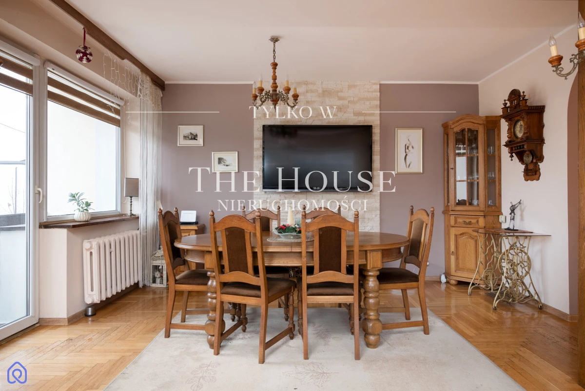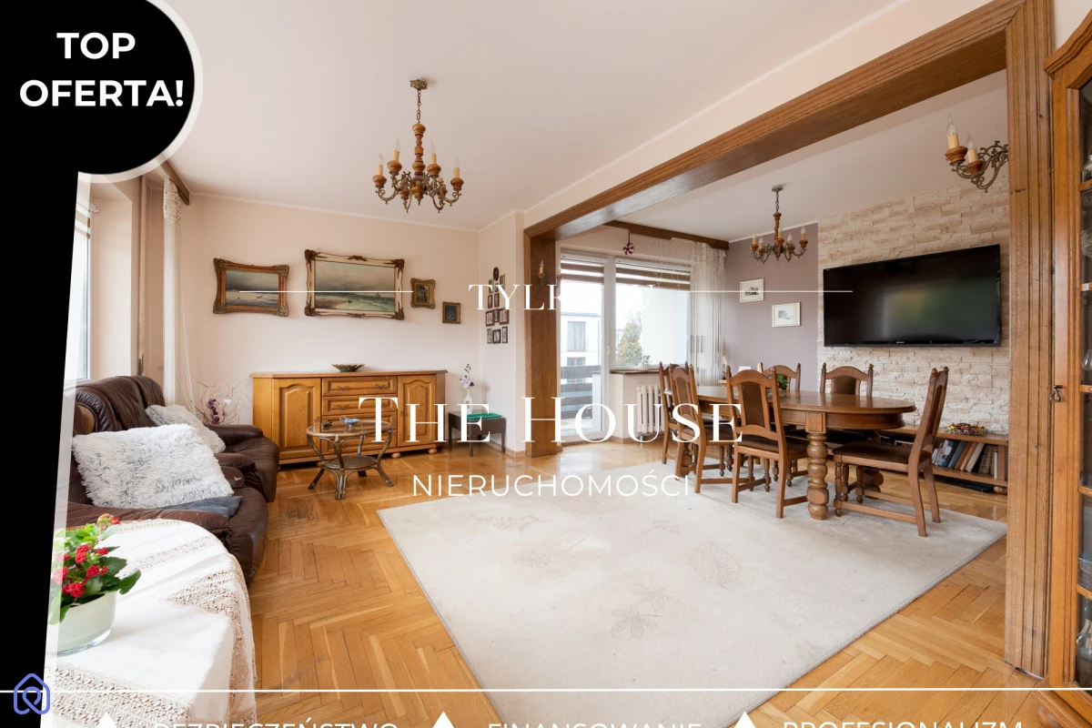 Jasny salon z jadalnią i wyjściem na duży taras od strony południowej. Niemal panoramiczne przeszklenia zapewniają naturalne światło przez cały dzień i płynne połączenie wnętrza z ogrodem. Kuchnia jako osobne pomieszczenie. Dodatkowo balkon (loggia) od strony północnej.