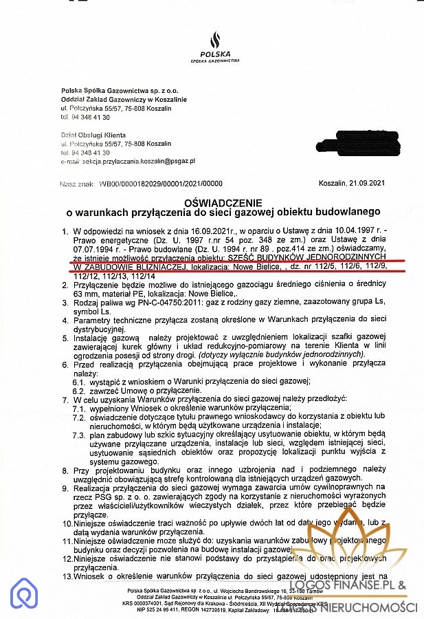 Przedstawiamy Państwu w naszej ofercie działki w miejscowości Nowe Bielice, gm. Biesiekierz, woj. zachodniopomorskie. Nowe Bielice, mała, prężnie rozwijająca się miejscowość o zalesionym terenie. Cicha i spokojna okolica wokół której znajdziemy przedszkole, szkołę oraz sklep spożywczy. Oddalona od pasa nadmorskiego ok 15km ( Mielno, Sarbinowo, Chłopy) oraz Koszalina ok. 3 km. Warunki zabudowy zostały wydane na: - budowę jednorodzinnego domu mieszkalnego - z wbudowanym garażem i poddaszem użytkowym wraz z infrastrukturą techniczną W naszej ofercie znajdziecie Państwo ostatnie przylegające działki: 1084 m2 nr działki 112/6 - 69zł/m2 1253 m2 nr działki 112/9 - 69zł/m2 916 m2 nr działki 112/12 - 69zł/m2 1114 m2 nr działki 112/13 - 69zł/m2 Media: Prąd - ok 200m Woda - ok 300m Kanalizacja - w drodze przylegającej do działki 112/1 Gaz - wzdłuż drogi Telekomunikacja - w drodze przylegającej do działki 112/1 Serdecznie zapraszam na prezentację powyższych nieruchomości. Pozdrawiam, Paulina Kaliszczak
