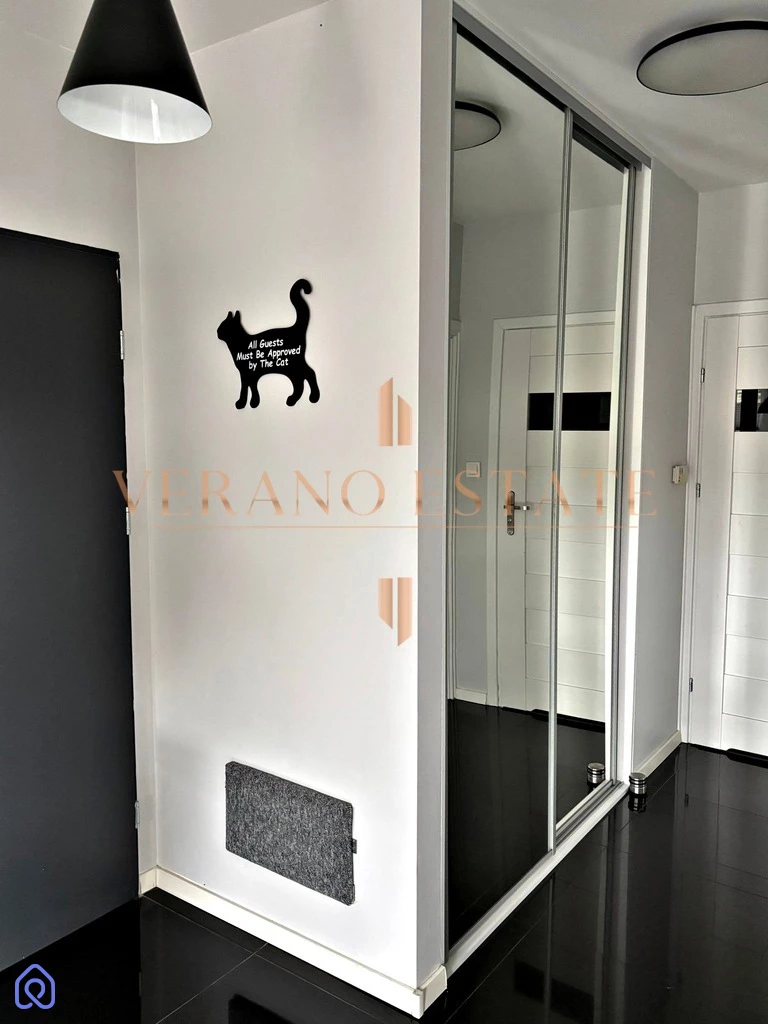 Mieszkanie wykończone w wysokim standardzie, z dbałością o detale. Składa się z przestronnego salonu z aneksem kuchennym, dwóch ustawnych sypialni, eleganckiej łazienki oraz przedpokoju z dużą szafą w zabudowie.