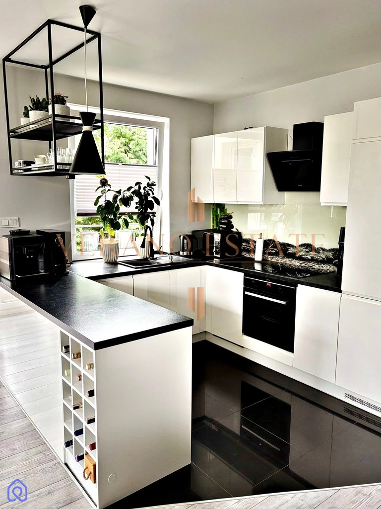 Nowoczesna kuchnia w zabudowie wyposażona jest w wysokiej klasy sprzęt AGD. Z salonu wyjście na narożny balkon z pięknym widokiem na okolice(12 m²) oraz drugi (3,7 m²), idealny na poranną kawę lub relaks po pracy.