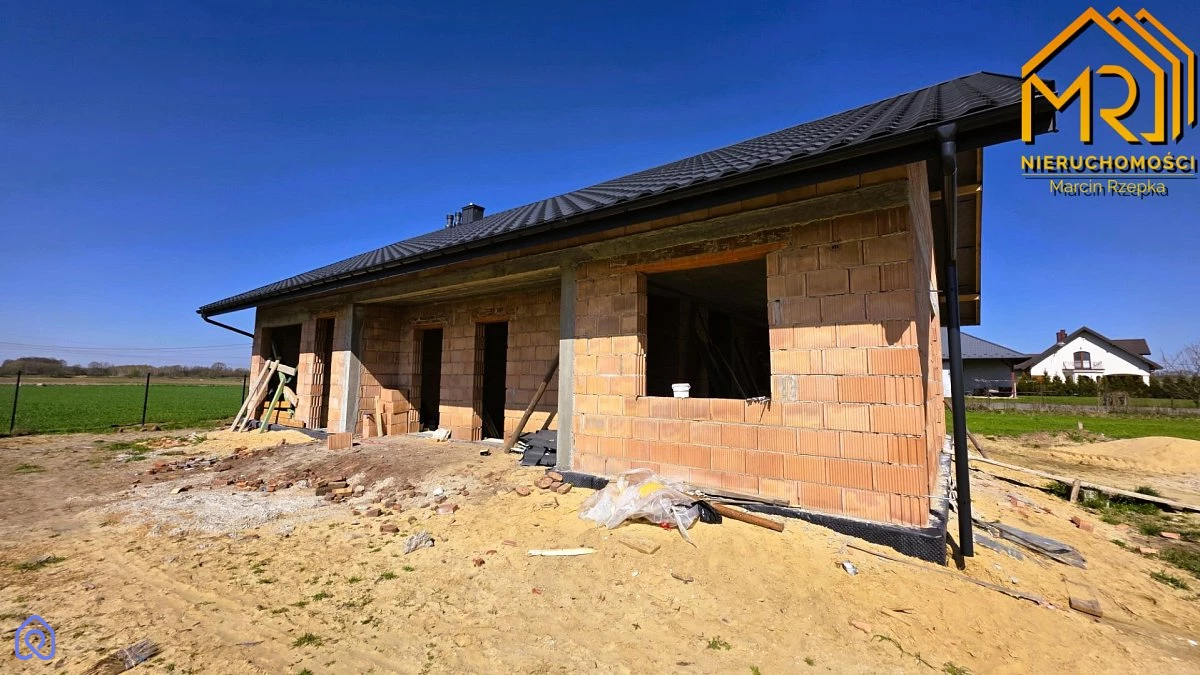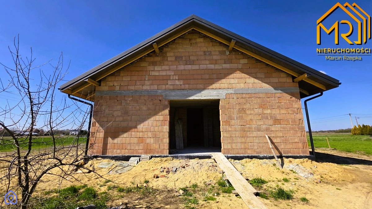 Parterowy dom w stanie surowym otwartym - 10 km od Tarnowa Na sprzedaż parterowy dom jednorodzinny w stanie surowym otwartym, położony w miejscowości Łukowa, gmina Lisia Góra, powiat tarnowski, zaledwie 10 km od Tarnowa. Nieruchomość usytuowana na działce o powierzchni 0,08 ha, w spokojnej okolicy, w otoczeniu zieleni i luźnej zabudowy jednorodzinnej. Działka do wydzielenia z większej powierzchni. Budynek o całkowitej powierzchni 157,72 m2 i powierzchni użytkowej 123,25 m2 o prostej bryle, został wybudowany w 2024 roku według projektu Dom pod hebanowcem`. Konstrukcja wykonana z pustaka typu Max, ze stropem żelbetonowym. Dach dwuspadowy o nachyleniu 30°, pokryty blachodachówką w kolorze antracytu, oparty na drewnianej więźbie dachowej. Funkcjonalny układ pomieszczeń wyraźnie oddziela strefę dzienną od prywatnej. Wiatrołap (5,14 m2) prowadzi do przestronnego holu (9,78 m2), z którego dostępne są wszystkie części domu. Strefa dzienna to przestronny salon z jadalnią (23,33 m2) z wyjściem na taras pod pergolą. W salonie przewidziano miejsce na kominek, a duże przeszklenia zapewniają widok na ogród. Kuchnia (11,75 m2) z miejscem na wyspę połączona jest z praktyczną spiżarnią (2,81 m2). Toaleta (1,69 m2) znajduje się przy holu, natomiast kotłownia z funkcją pralni (6,47 m2) dostępna jest z wiatrołapu. Część nocna to trzy wygodne sypialnie (16,35 m2; 10,23 m2; 10,24 m2), każda z możliwością bezpośredniego wyjścia do ogrodu. Dopełnieniem tej strefy jest łazienka (6,63 m2) z miejscem na wannę i prysznic. W bryłę budynku wkomponowano jednostanowiskowy garaż o powierzchni 18,83 m2. Działka w kształcie zbliżonym do prostokąta, o wymiarach ok. 24 m szerokości i 30 m długości, położona na terenie płaskim. W trakcie wykonywania ogrodzenia. Dojazd do posesji zapewnia udział w drodze szutrowej, oddalonej o około 122 metry od asfaltowej drogi gminnej. Dostępne media: prąd na działce; gaz, wodociąg i kanalizacja w trakcie przyłączy. W pobliżu znajduje się pełna infrastruktura: szkoła podstawowa i przedszkole (ok. 1,8 km), kościół oraz węzeł autostrady A4 (8,6 km). Odległość do Lisiej Góry wynosi 7,4 km, a do centrum Tarnowa 10 km. Cena 370 000 złotych. Zapraszam do kontaktu oraz na prezentację nieruchomości - z przyjemnością odpowiem na wszelkie pytania i umówię dogodny termin spotkania.