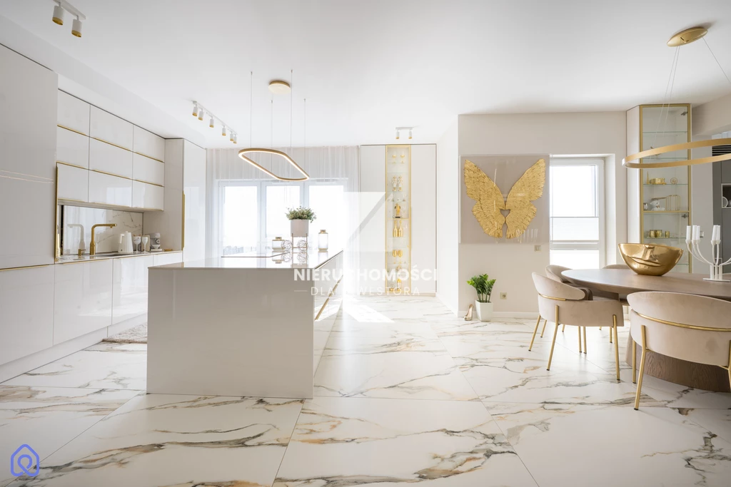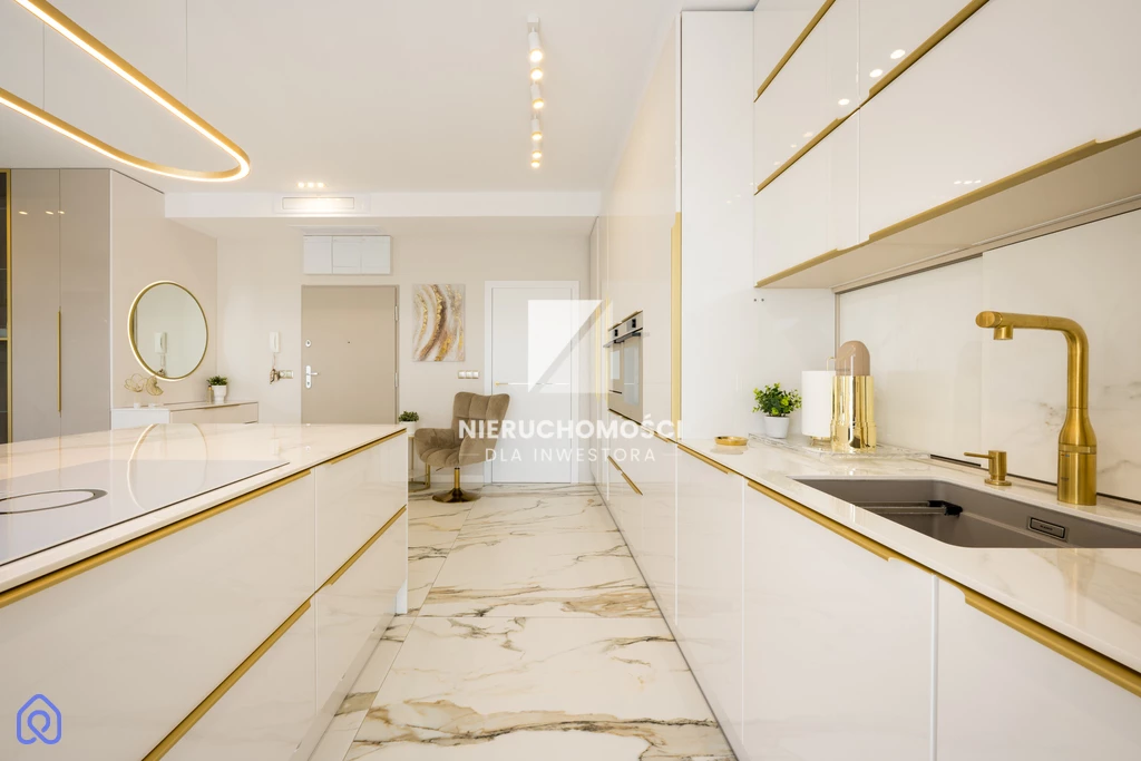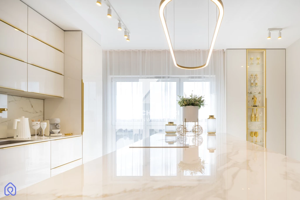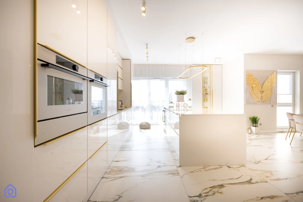Bright surfaces, gold accents, carefully selected details – everything forms an elegant yet understated whole. This apartment does not try to impress loudly. It builds a relationship – the longer you stay, the more you appreciate it.