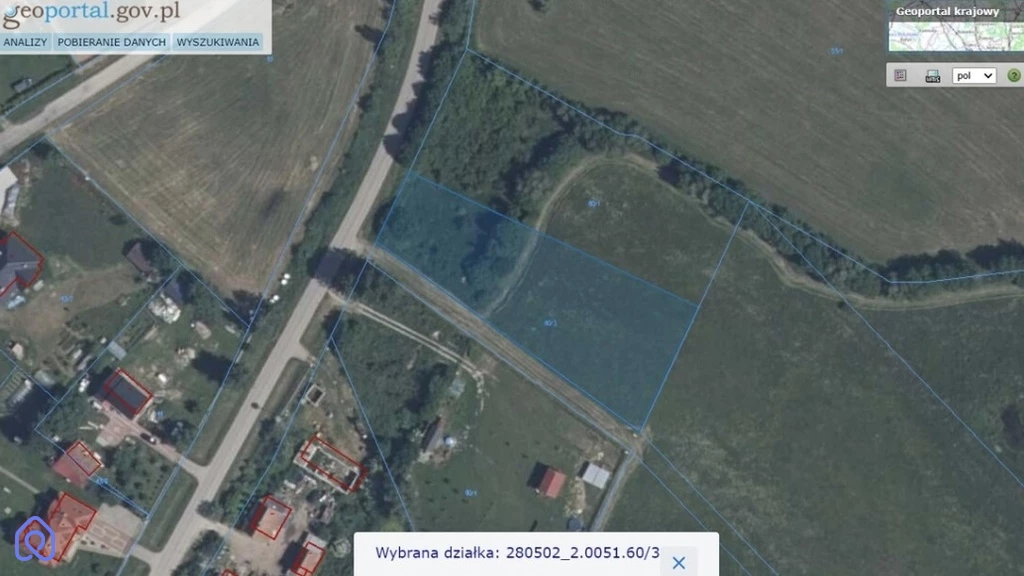 Przedmiotowa działka oznaczona jest numerem ewidencyjnym nr 60/3 z obrębu 0051 . Nieruchomość posiada lekko nachylone ukształtowanie zapewniające jeszcze piękniejsze widoki. Obecnie jest częściowo zadrzewiona i porośnięta roślinnością. Znajduje się bezpośrednio przy drodze asfaltowej powiatowej, co ułatwia komfortowy dojazd przez cały rok. To doskonała inwestycja ze względu na to, iż działka umożliwia podział na mniejsze, wygodne do zagospodarowania parcele, a więc istnieje możliwość dostosowania tego terenu do różnych celów.